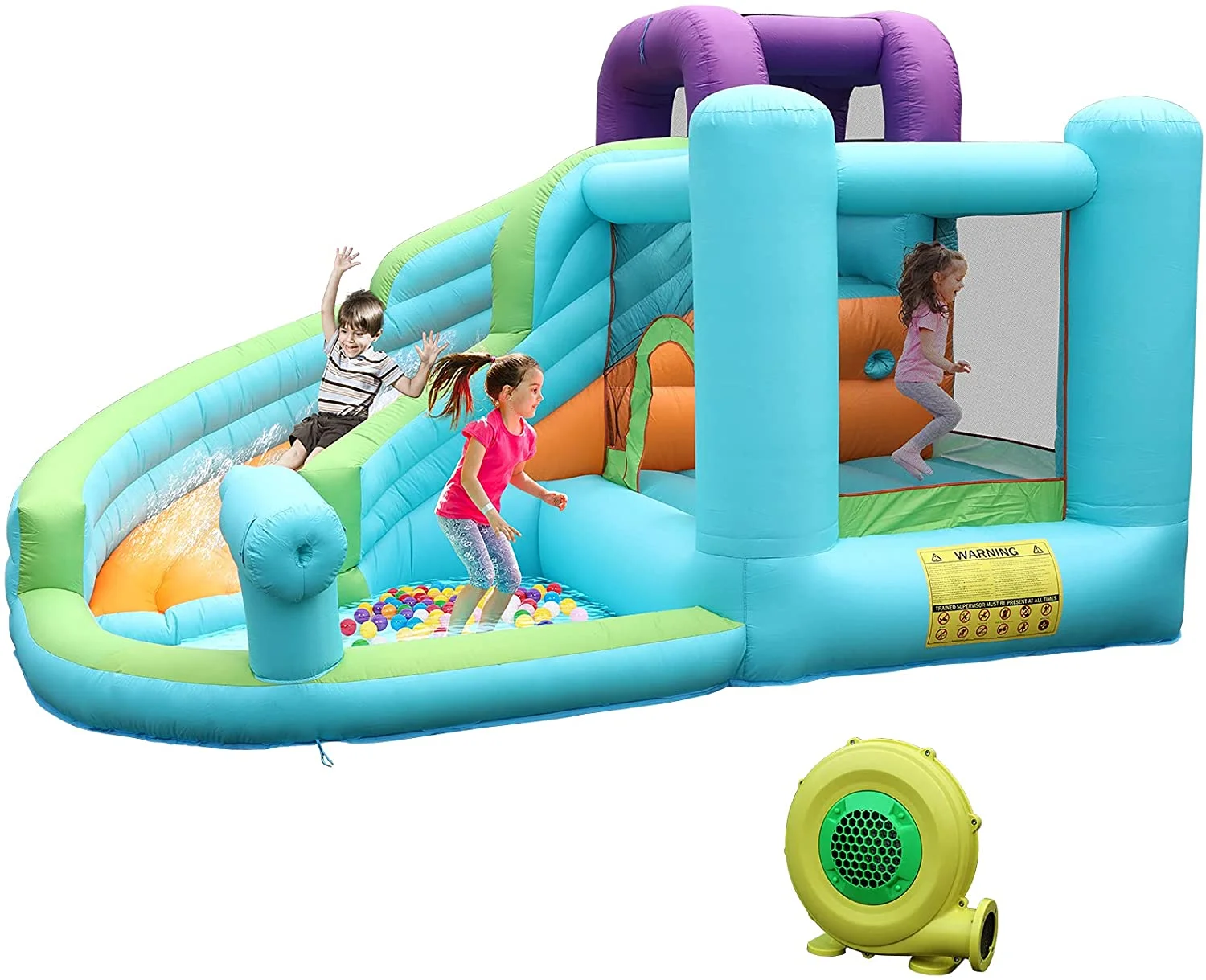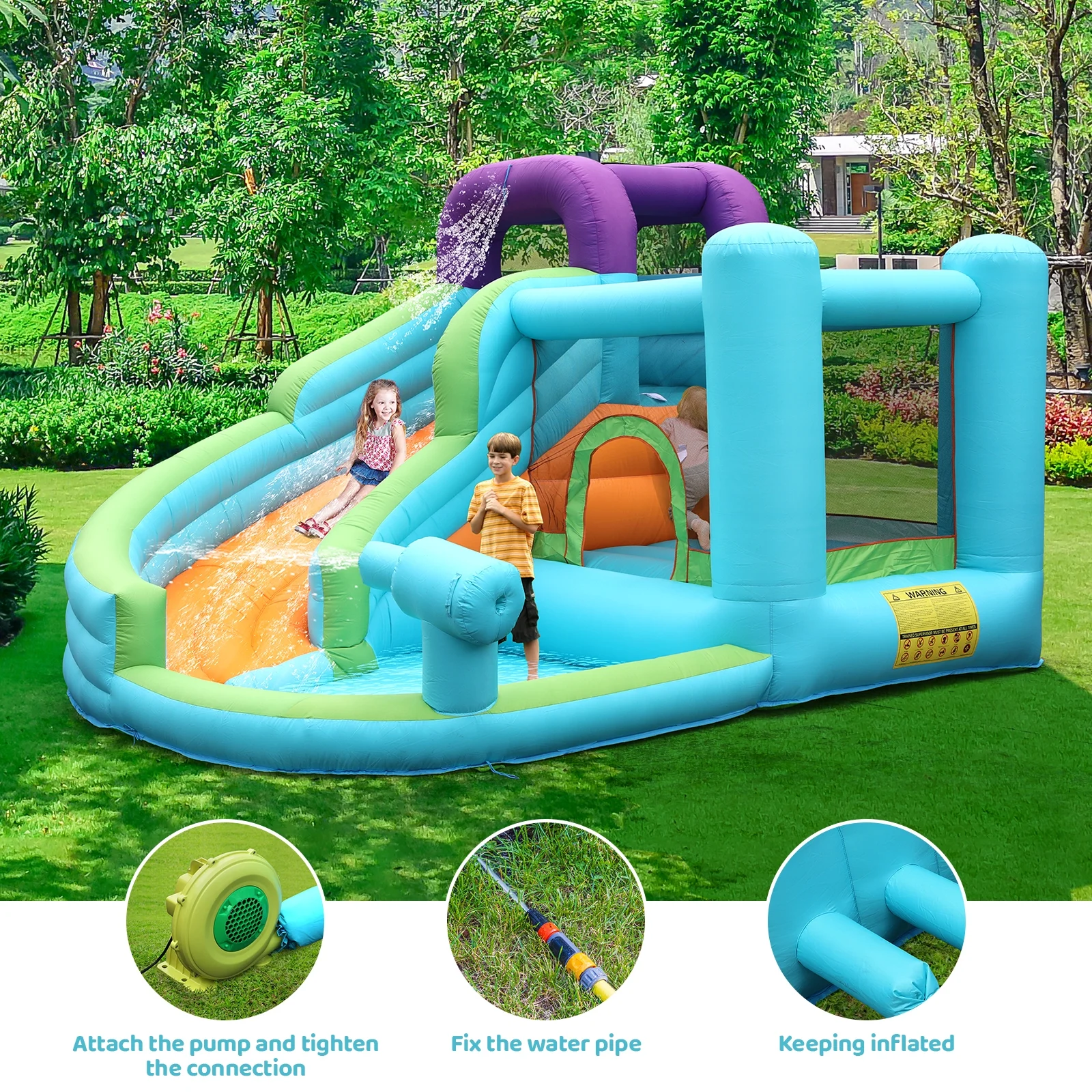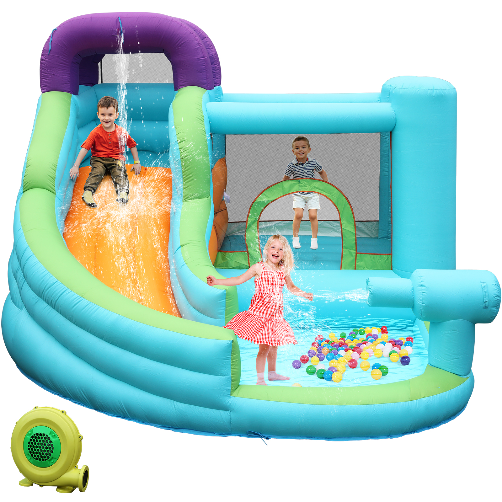 LAZY BUDDY Kids Inflatable Bounce House Water Slide W/ Splash Pool & Play Jumping Area, with Blower