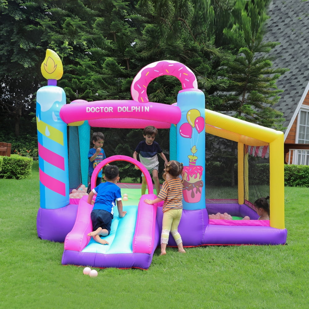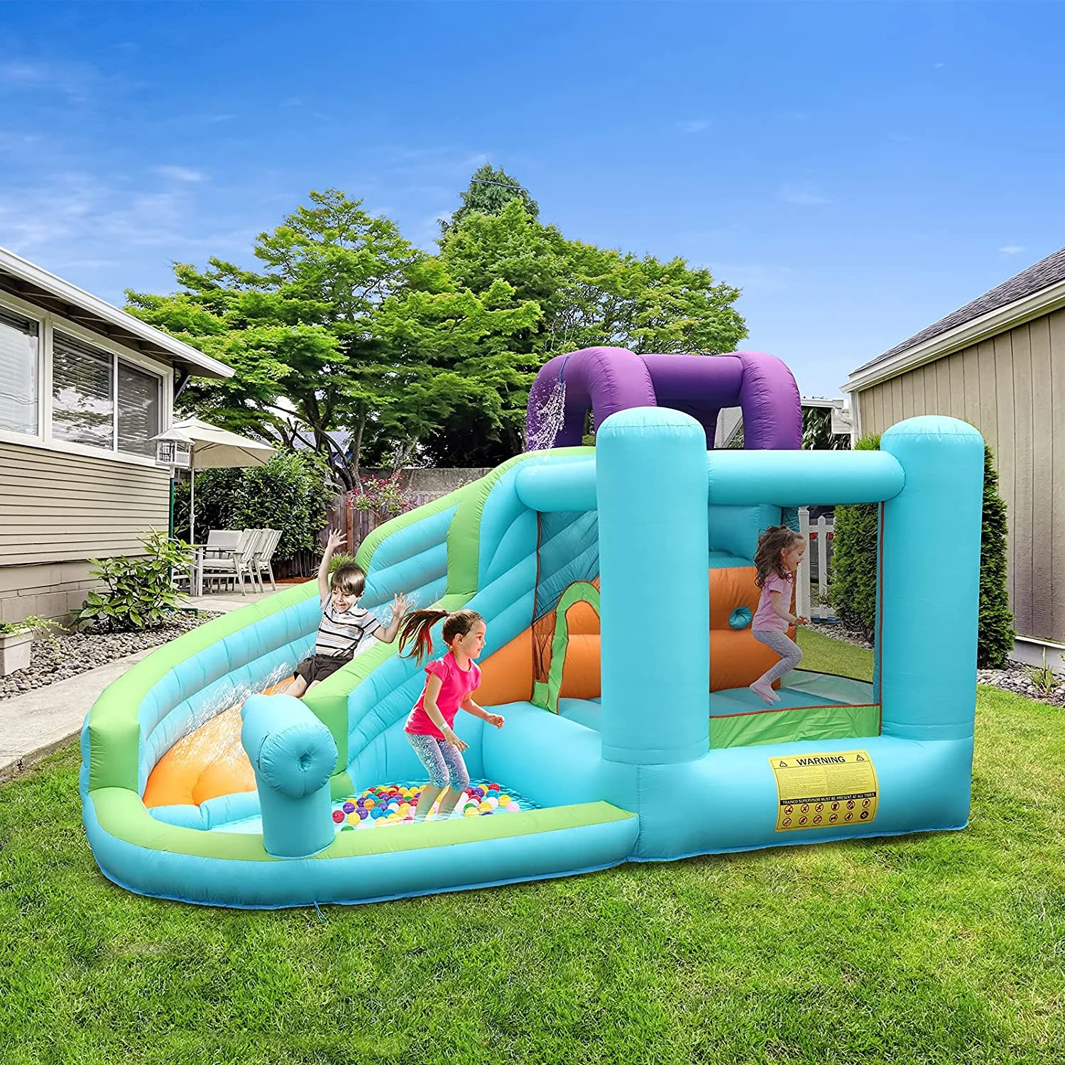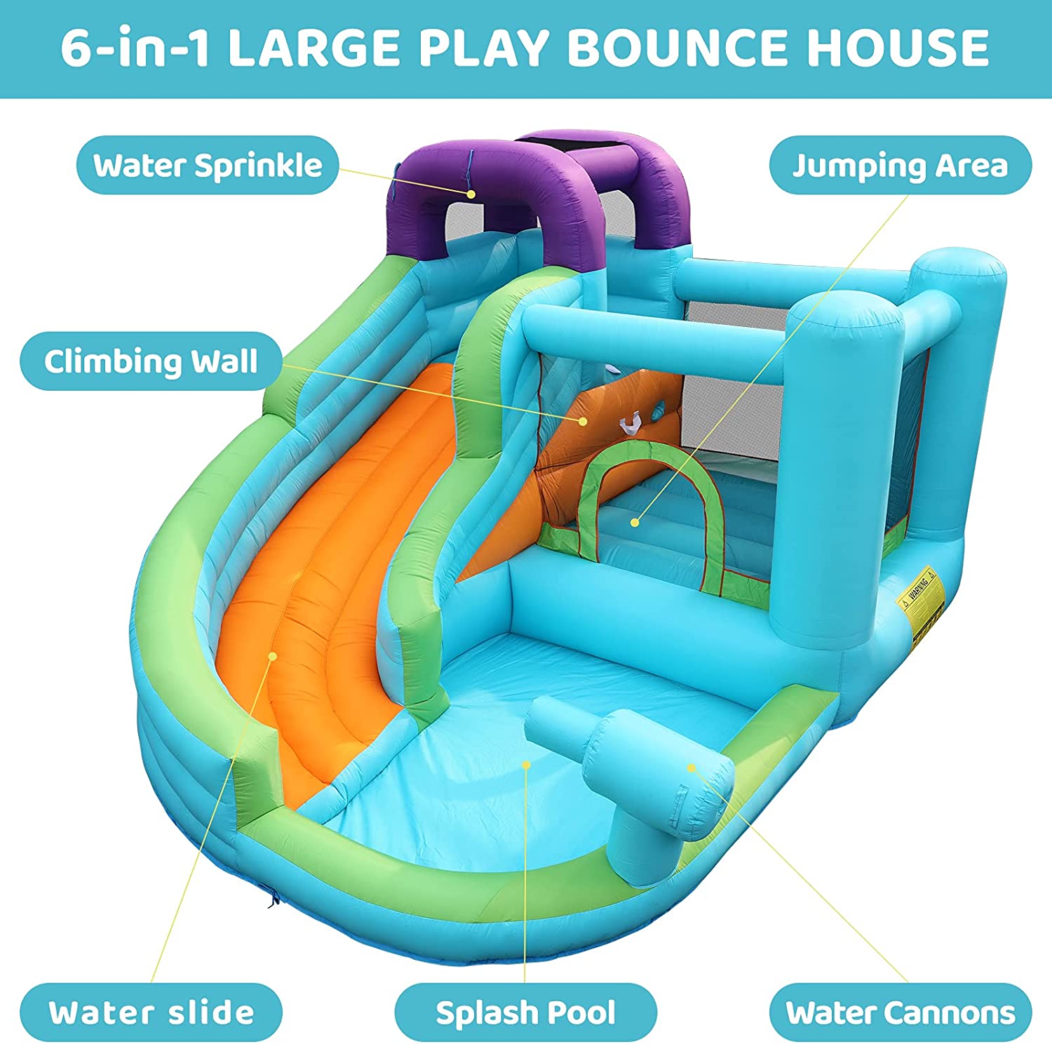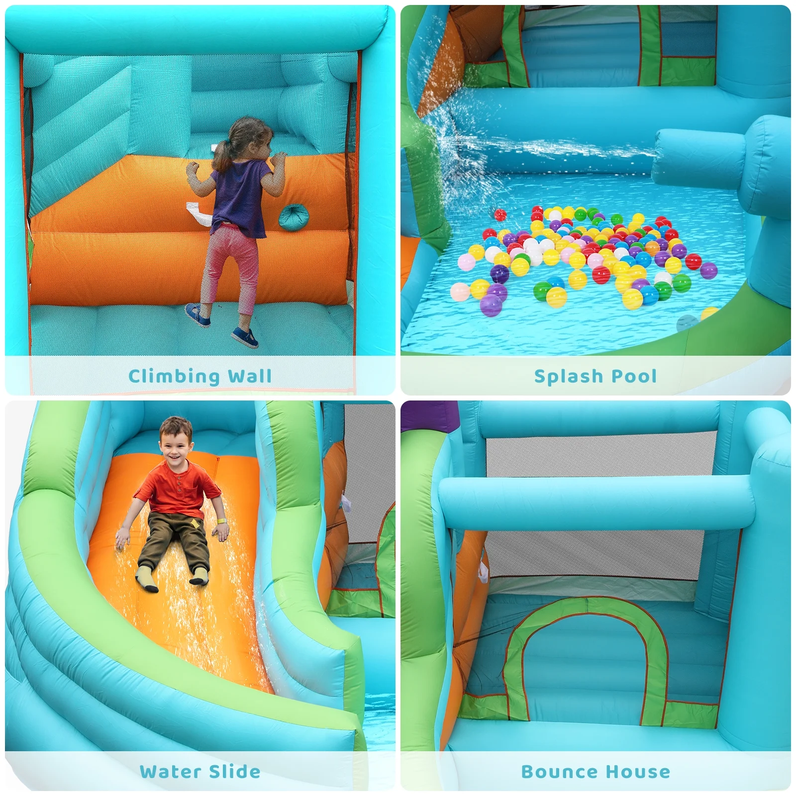 LAZY BUDDY Kids Inflatable Bounce House Water Slide W/ Splash Pool & Play Jumping Area, with Blower