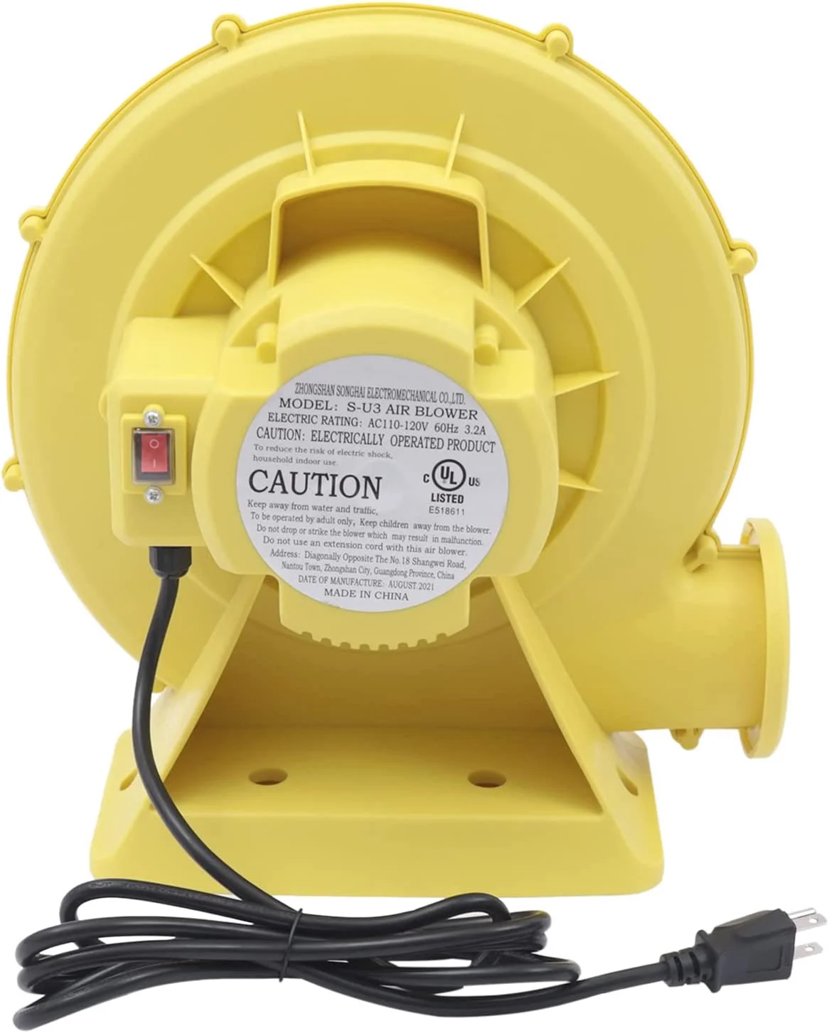 SalonMore 450W Air Blower For Inflatable Bounce CE, GS, UL Certification Standards Pump Fan Yellow