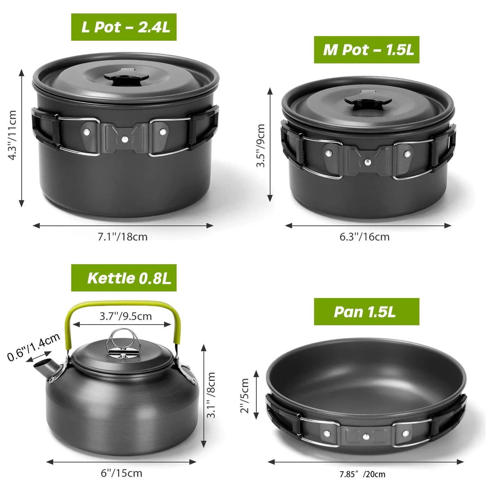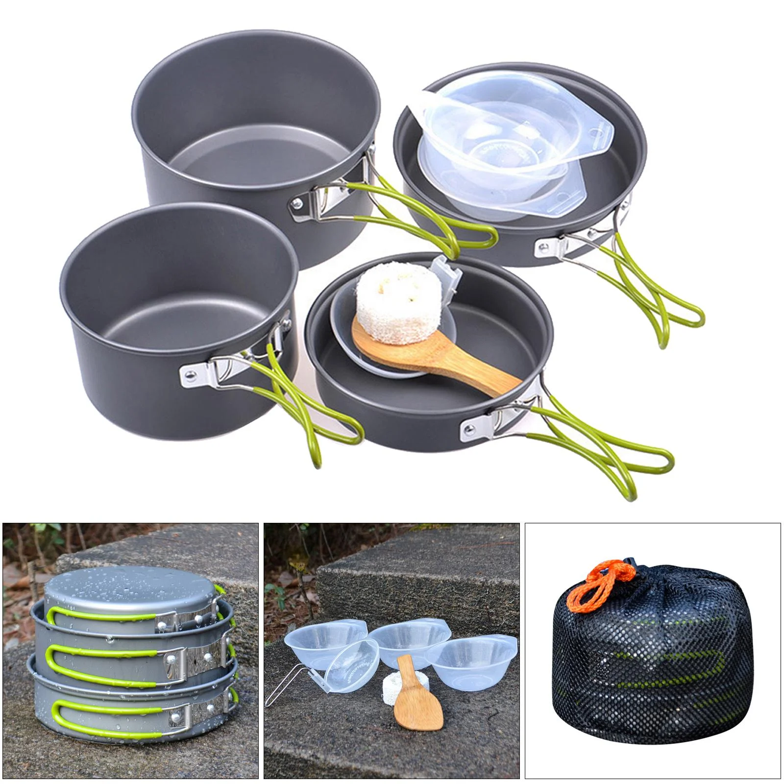 Nebublu Camping Cookware Mess Kit Pot Pan Kettle Set - Convenient Cooking Gear for Camping Trips