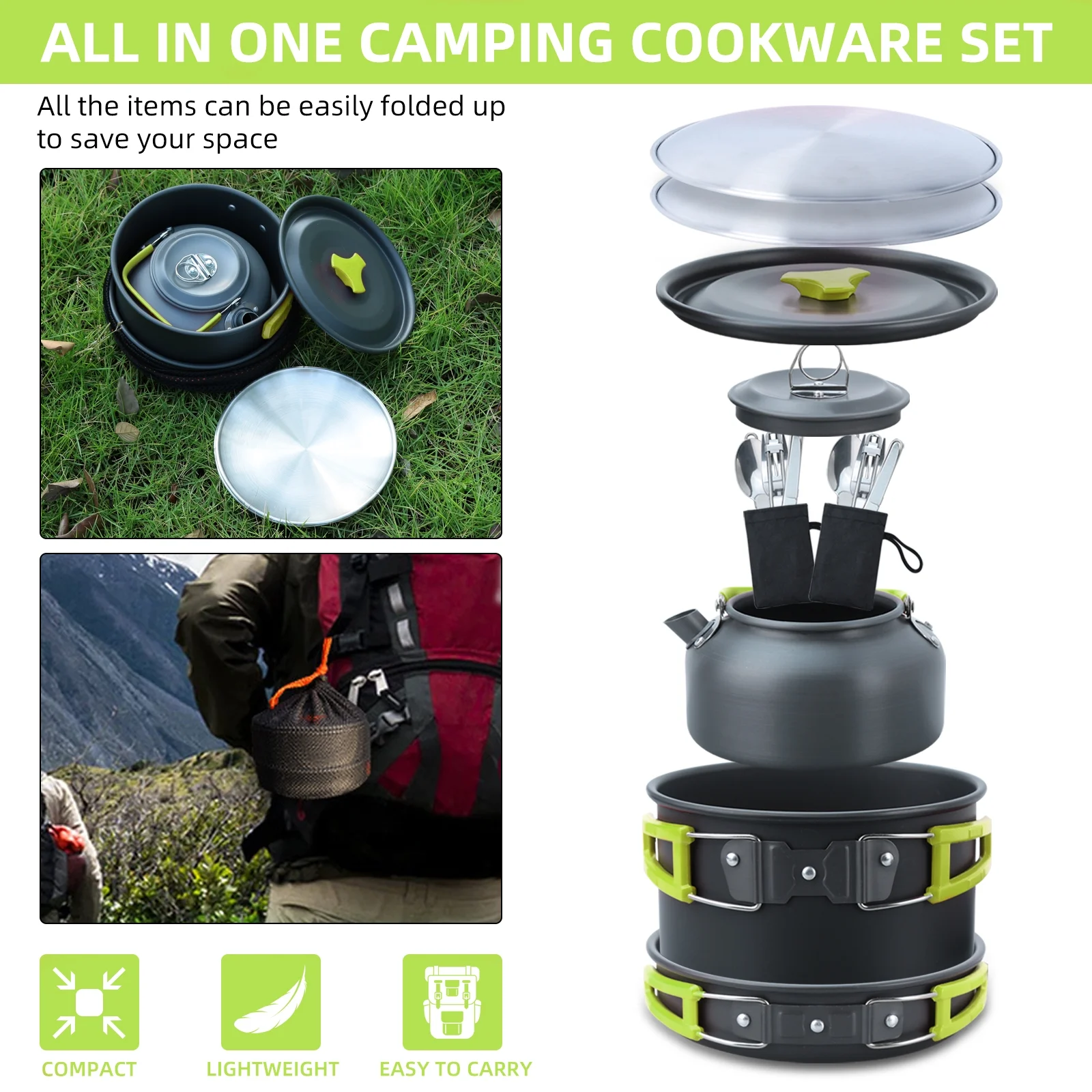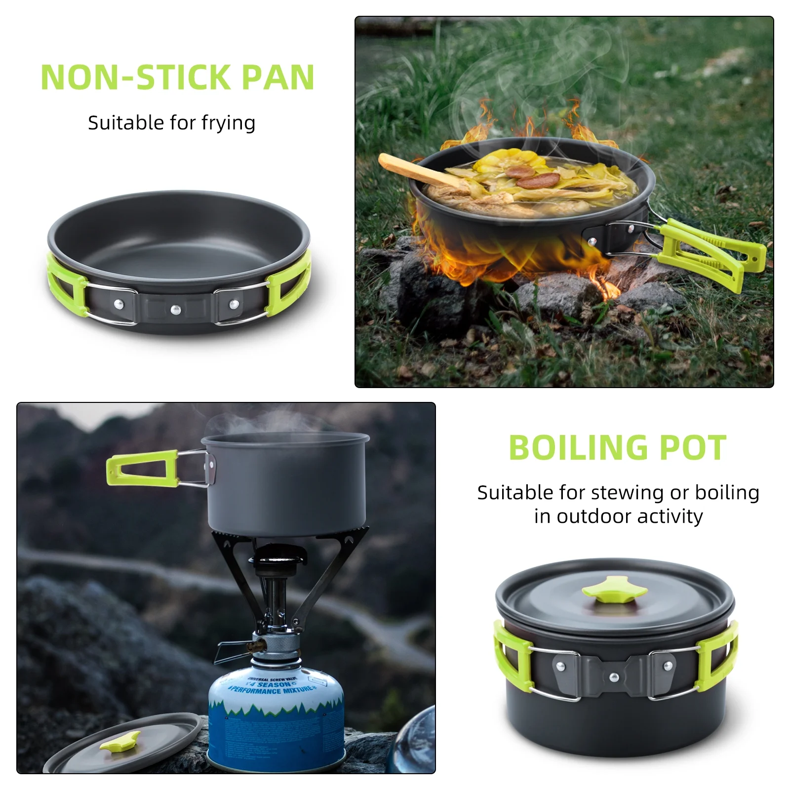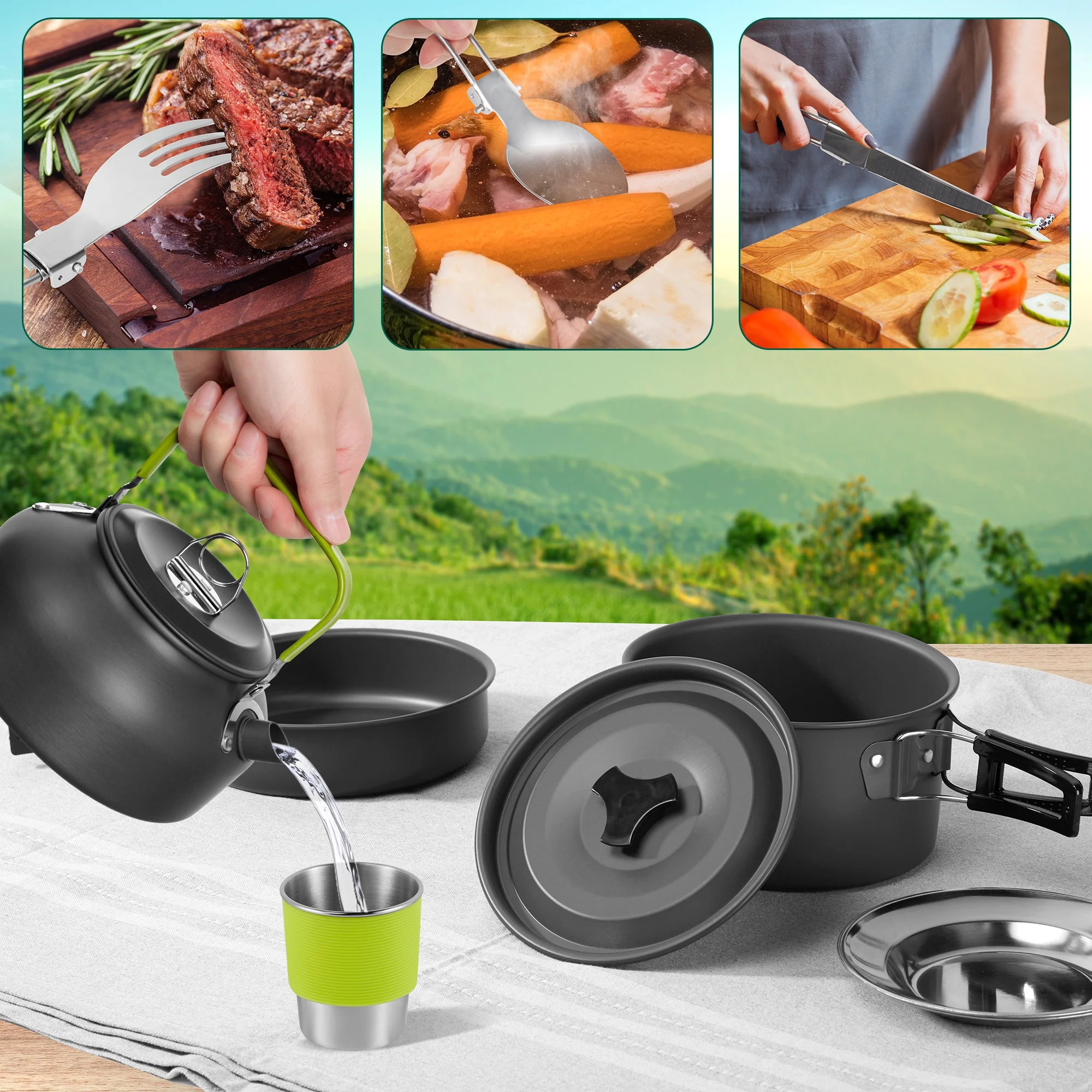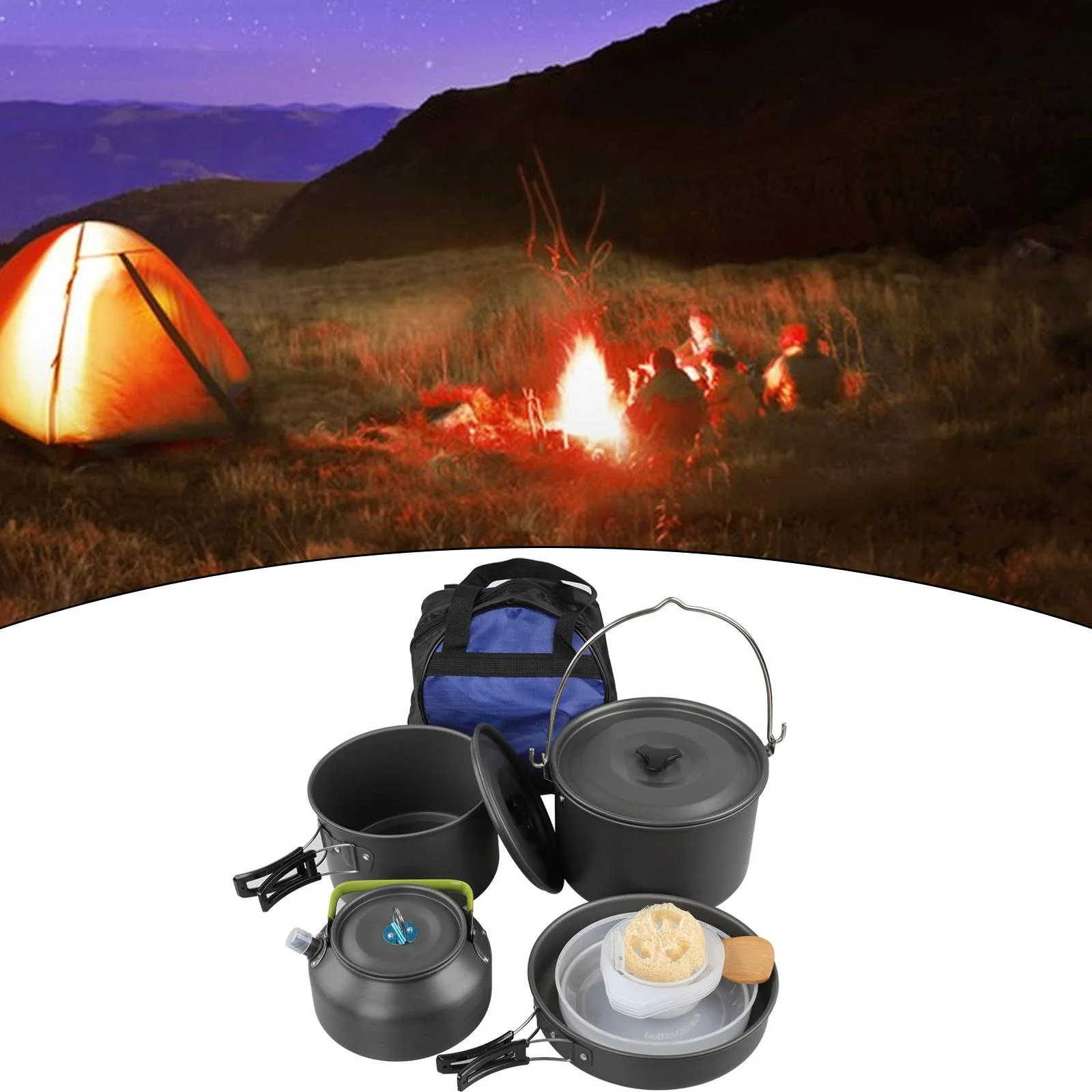 Gecheer Camping Hiking Cookware Set Alumina Pot Kit Portable Picnic Travel Cooking Accessory