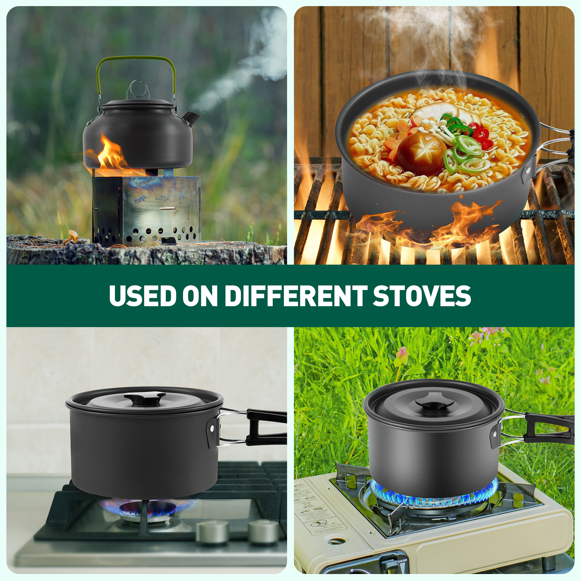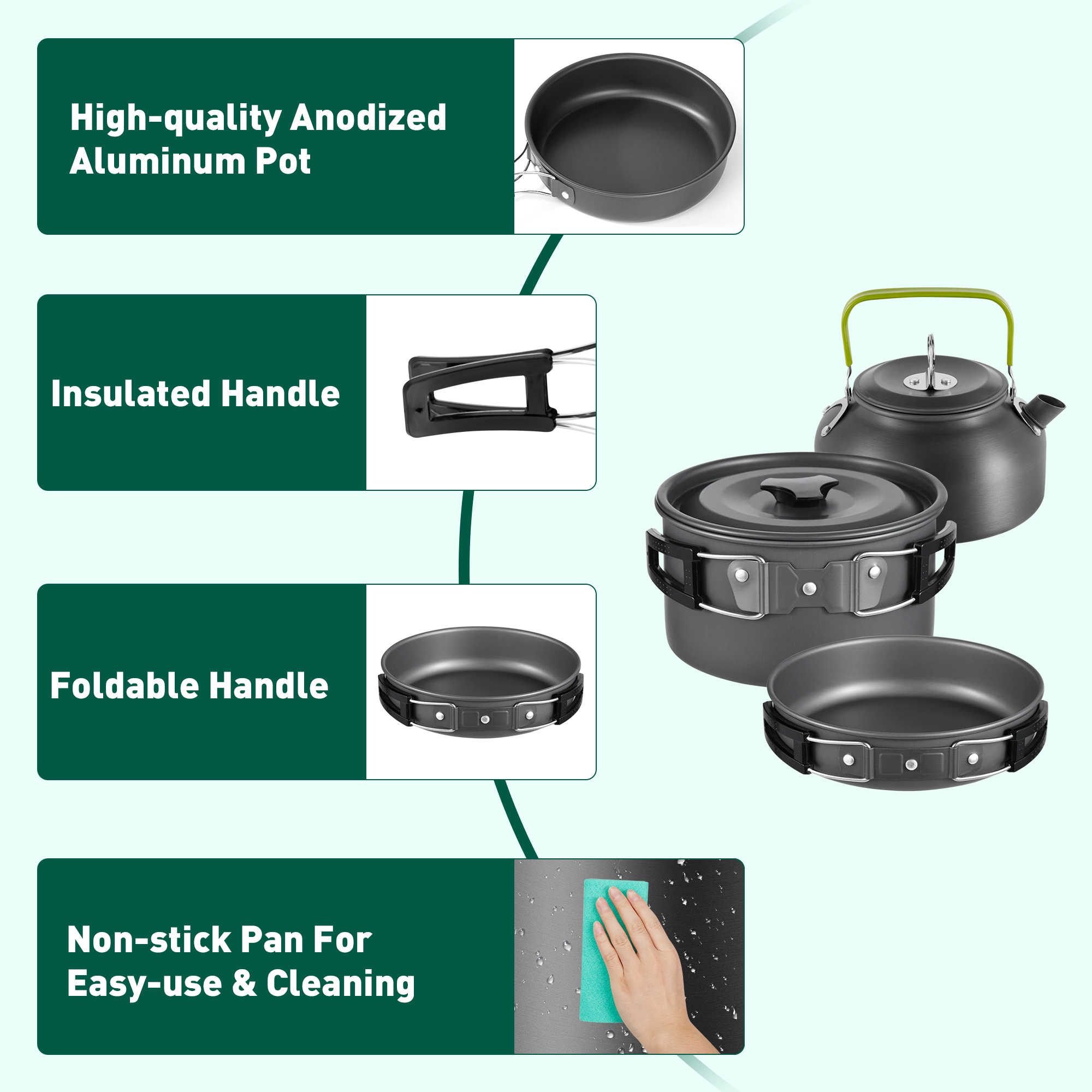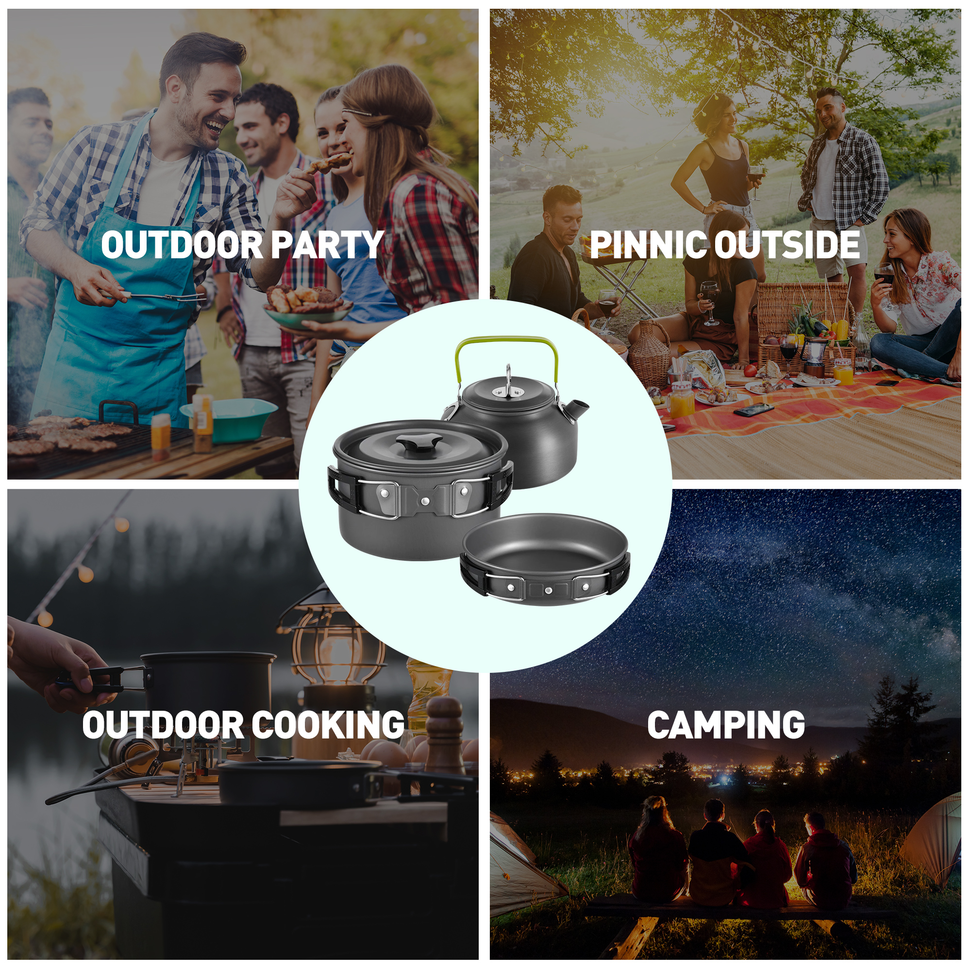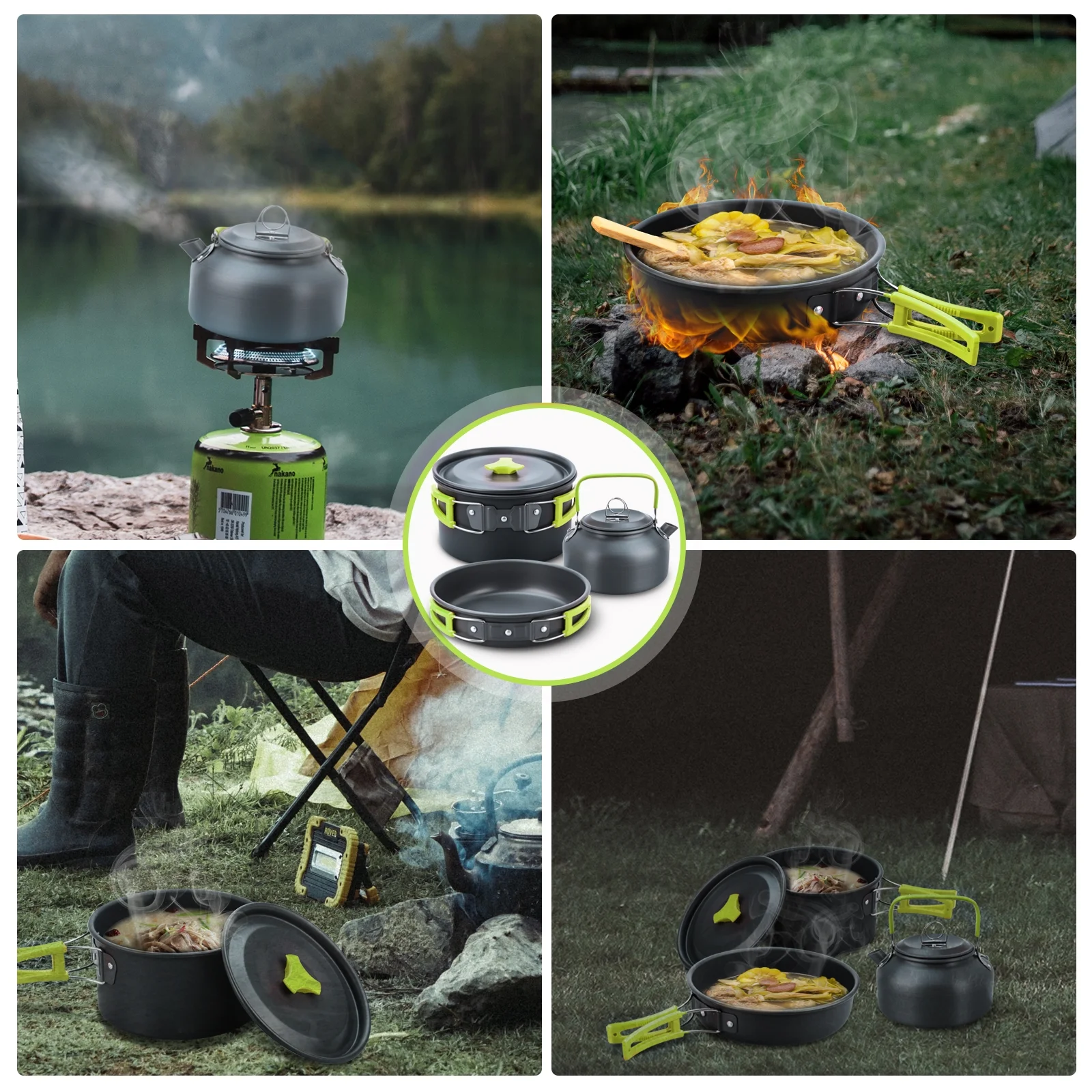 Gecheer Camping Hiking Cookware Set Alumina Pot Kit Portable Picnic Travel Cooking Accessory