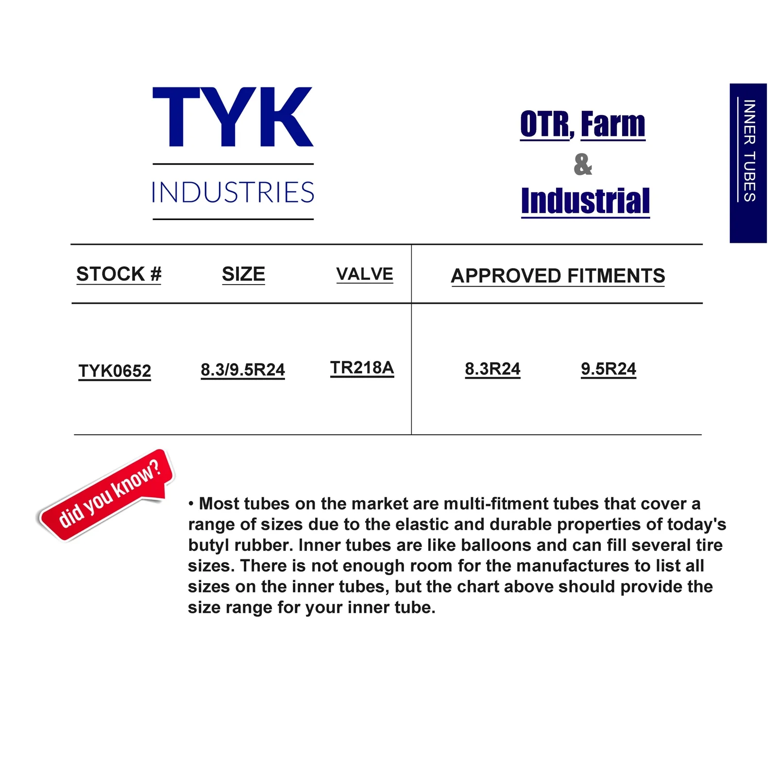 8.3/9.5R24, 8.3-24, 9.5-24 Tractor Tire Inner Tube TR218A Valve Radial Bias