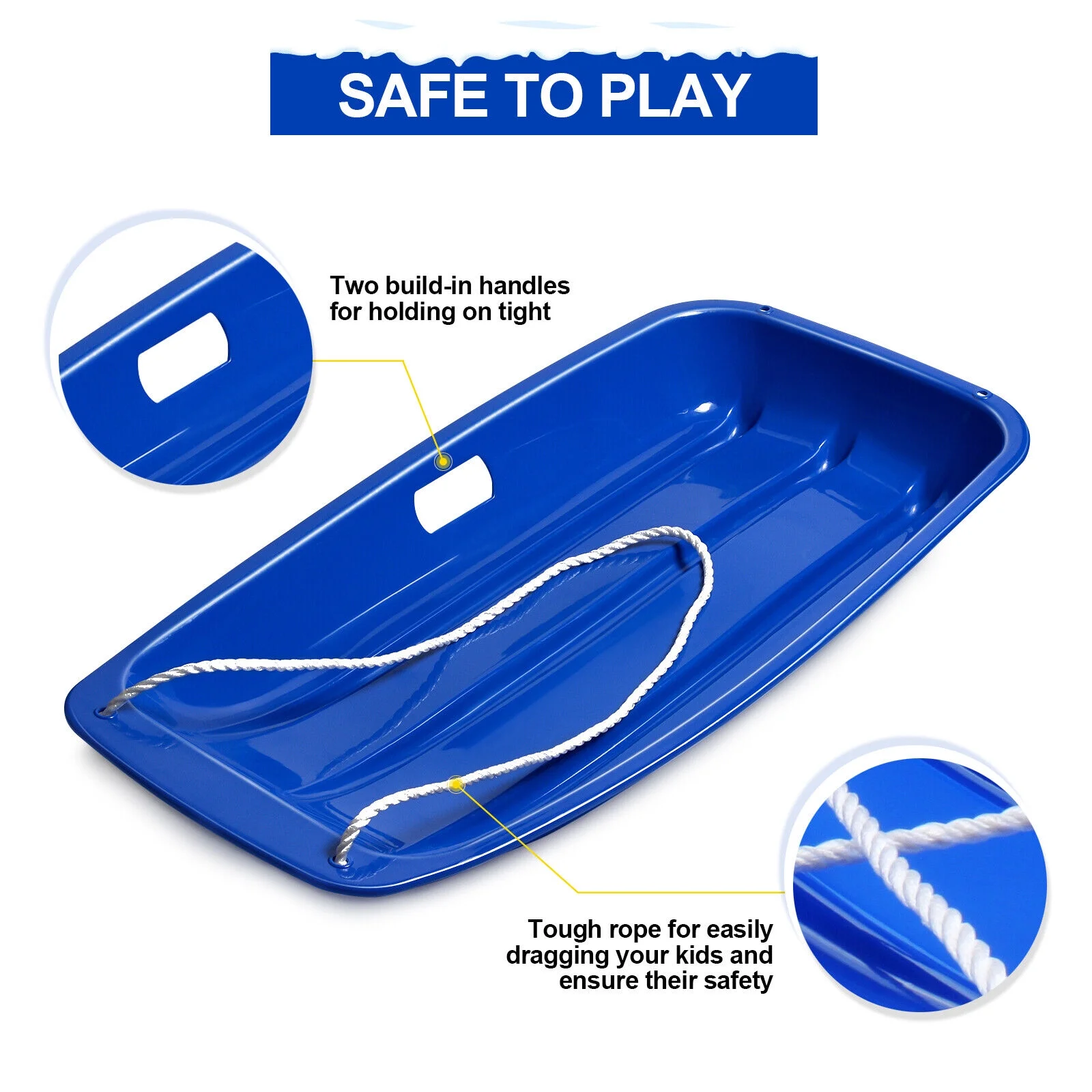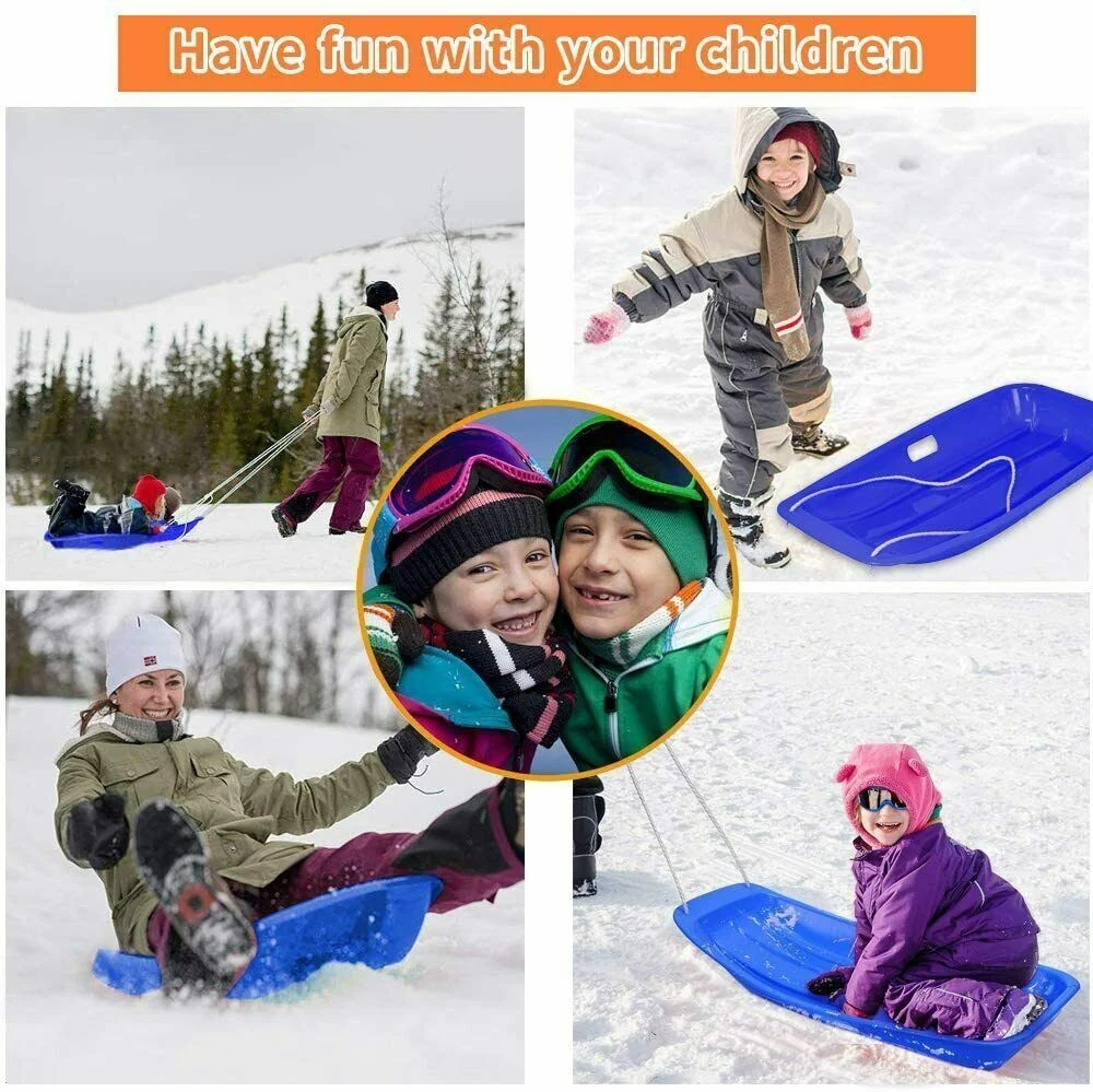 Humanity High Performance 5' wooden Snow Sled, toboggan with rope, handles and a snowboard plastic surface