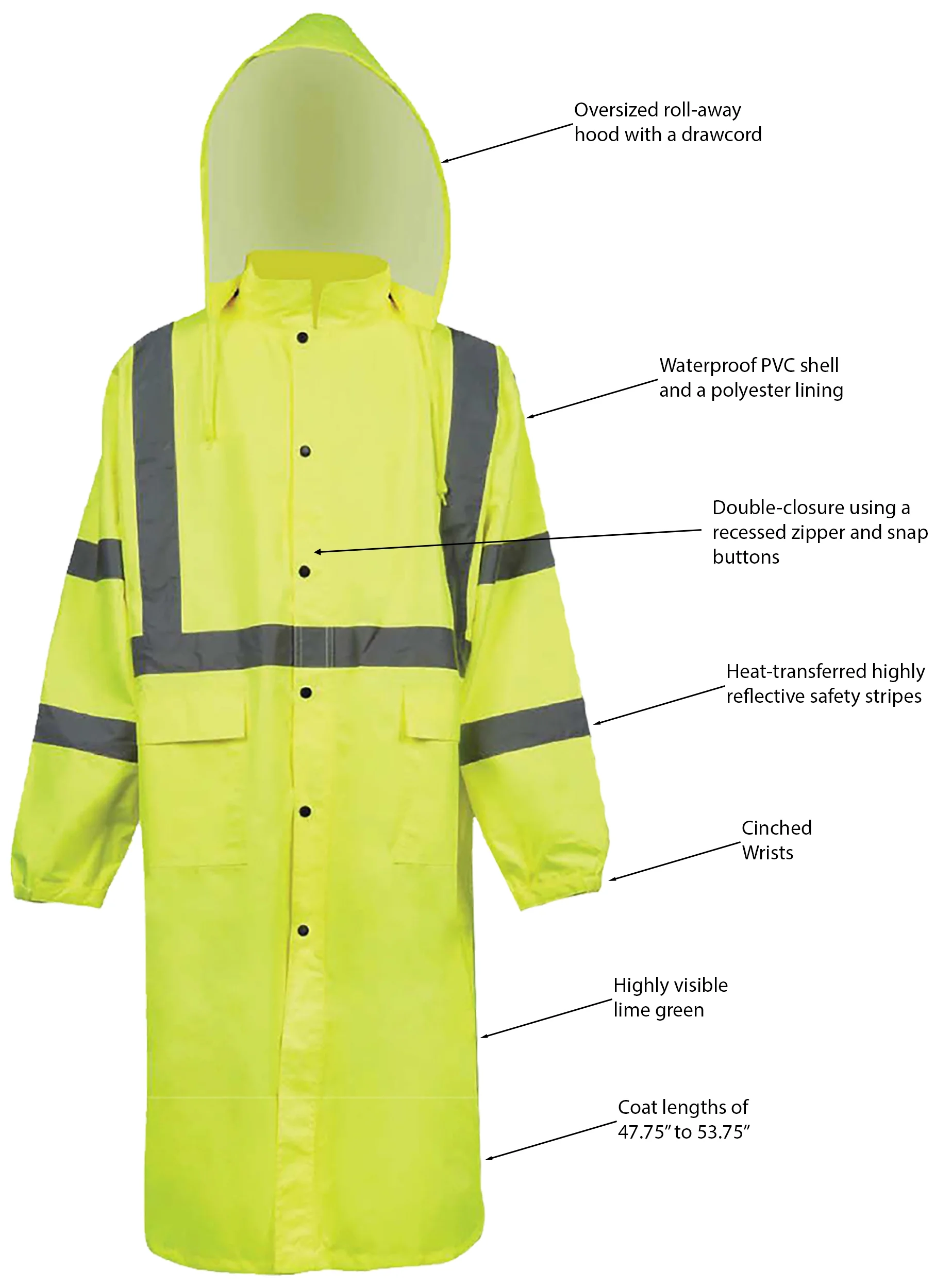 OrangeGear™ Hooded Class 3 Men’s Large Long Sleeve PVC Lime Waterproof Rain Coat