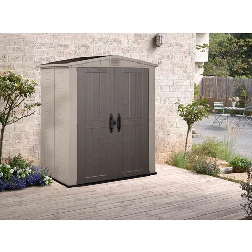 Keter Factor 6x 3 Outdoor Resin Shed, Lawn and Garden Storage, Beige and Taupe
