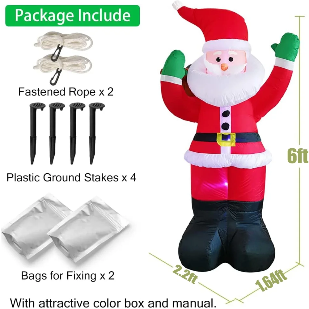 6Ft Christmas Inflatable Santa Claus with Gift Bag, LED Lights, Indoor/Outdoor Xmas Decoration, Yard Lawn Garden Xmas Party Prop Decor