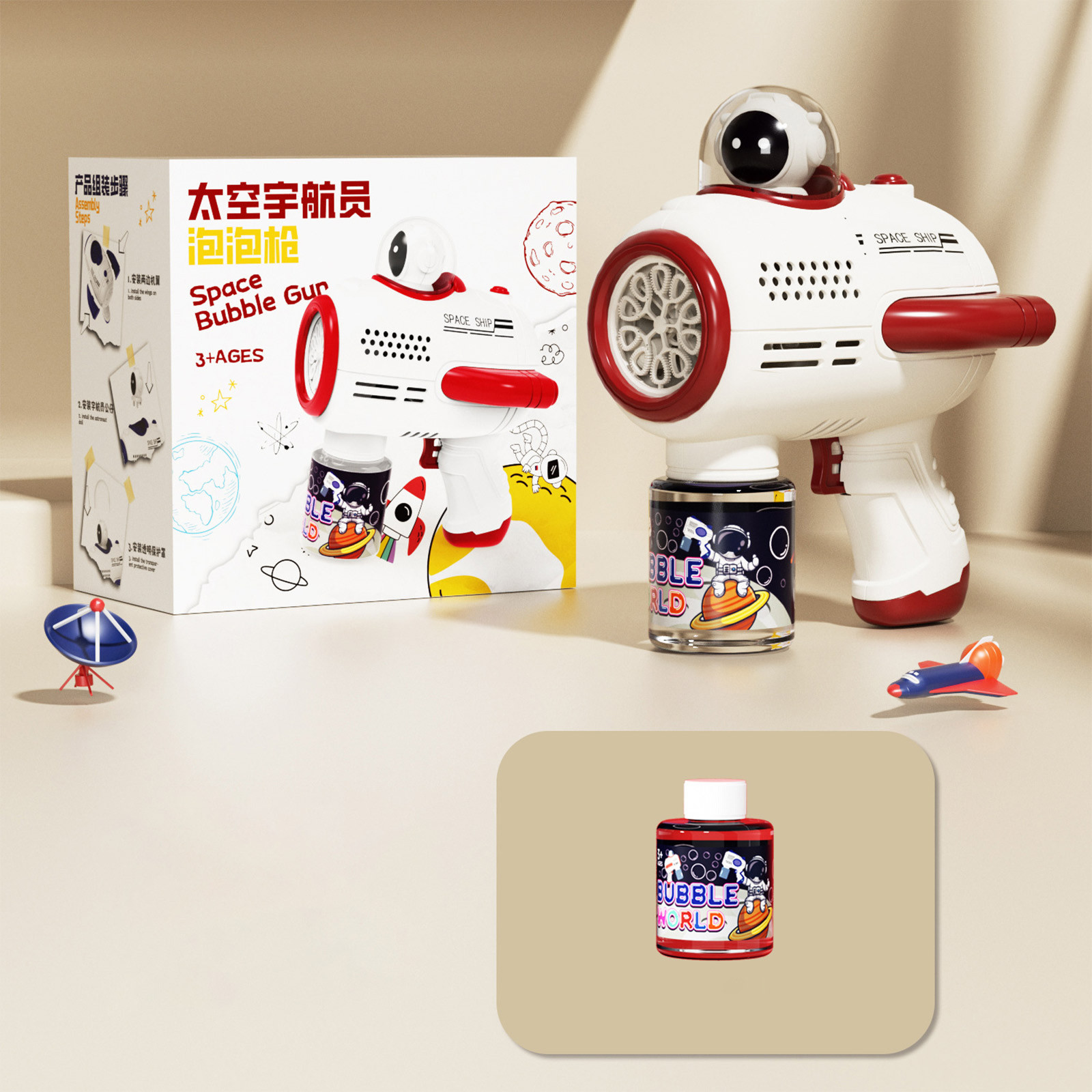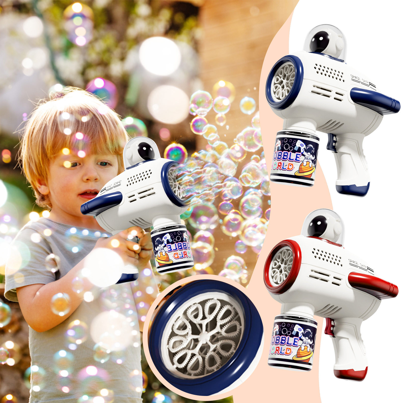 Clearance!Space Astronaut Bubble Machine Handheld Fully Automatic Gatling Blowing Bubble Gun 10 Holes Electric Children'S Toys Red