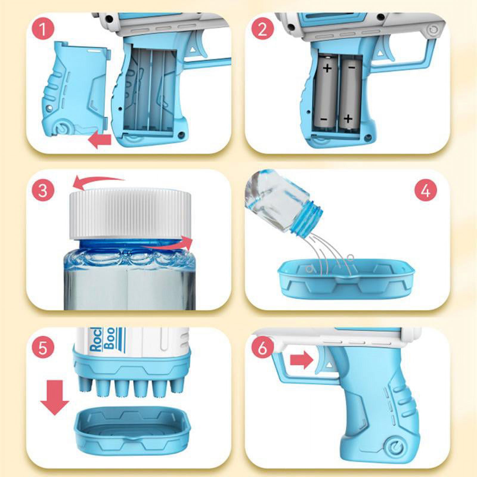 HeroNeo Electronic Bubble Maker Outdoor Play 32Hole Rocket Boom Bubble Toy Kiddie Toys