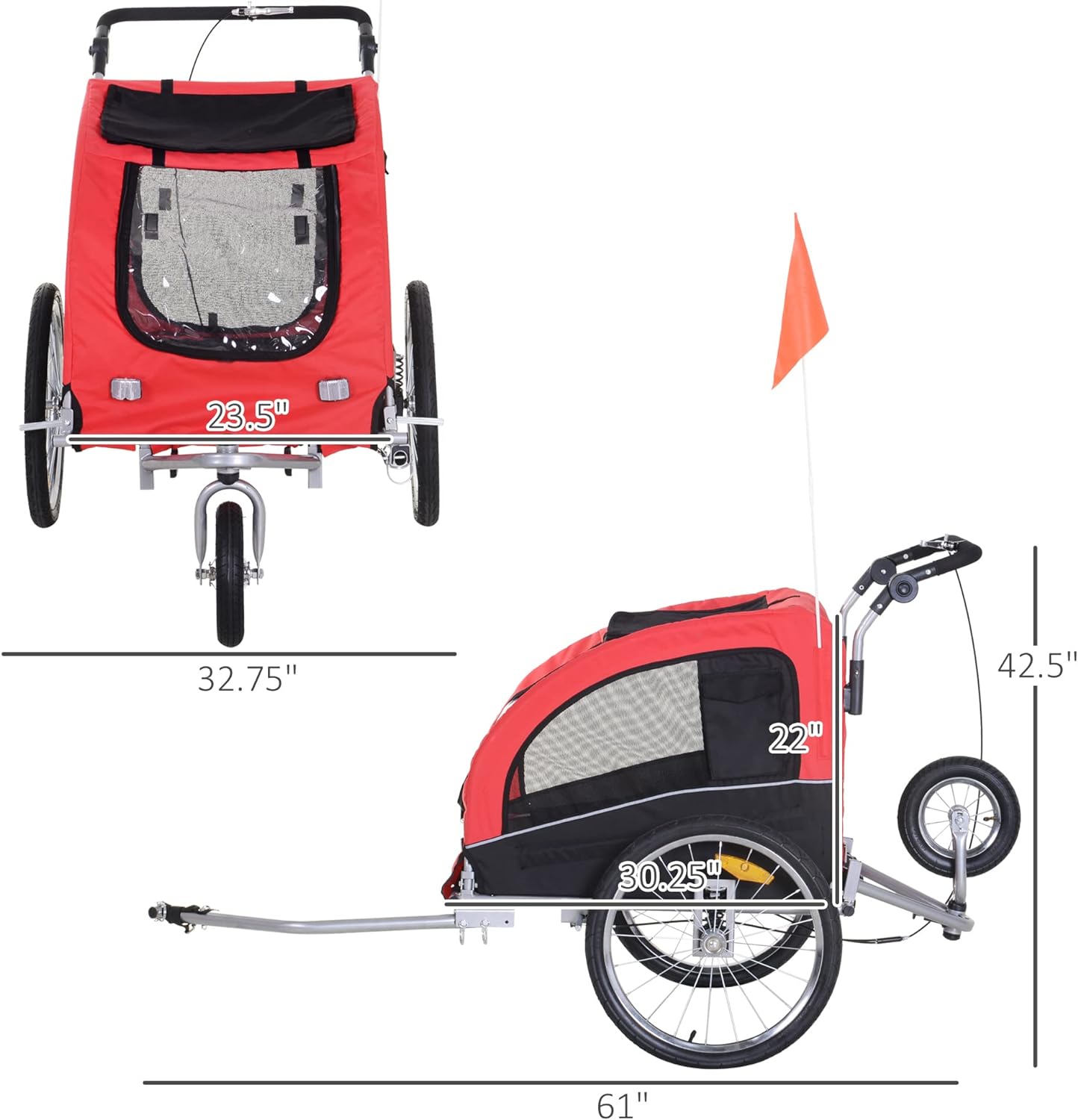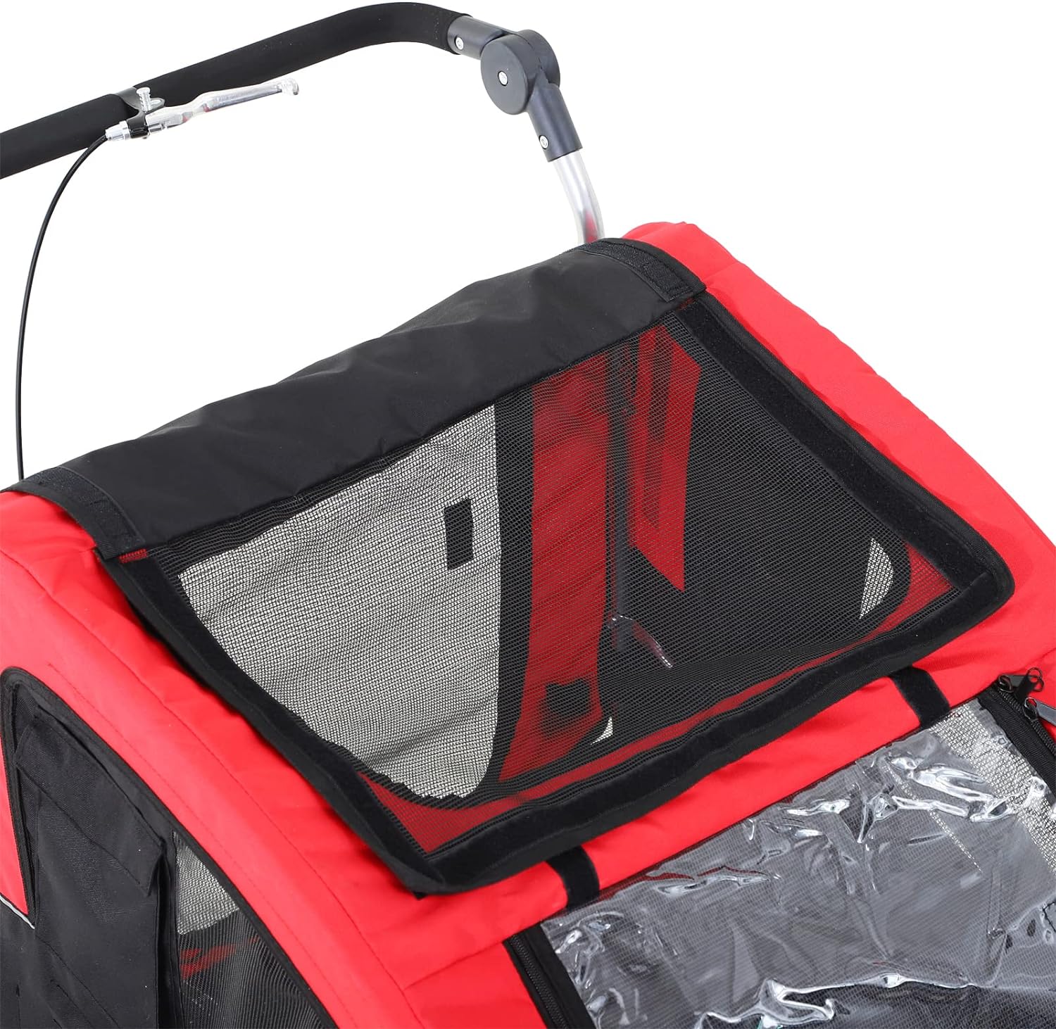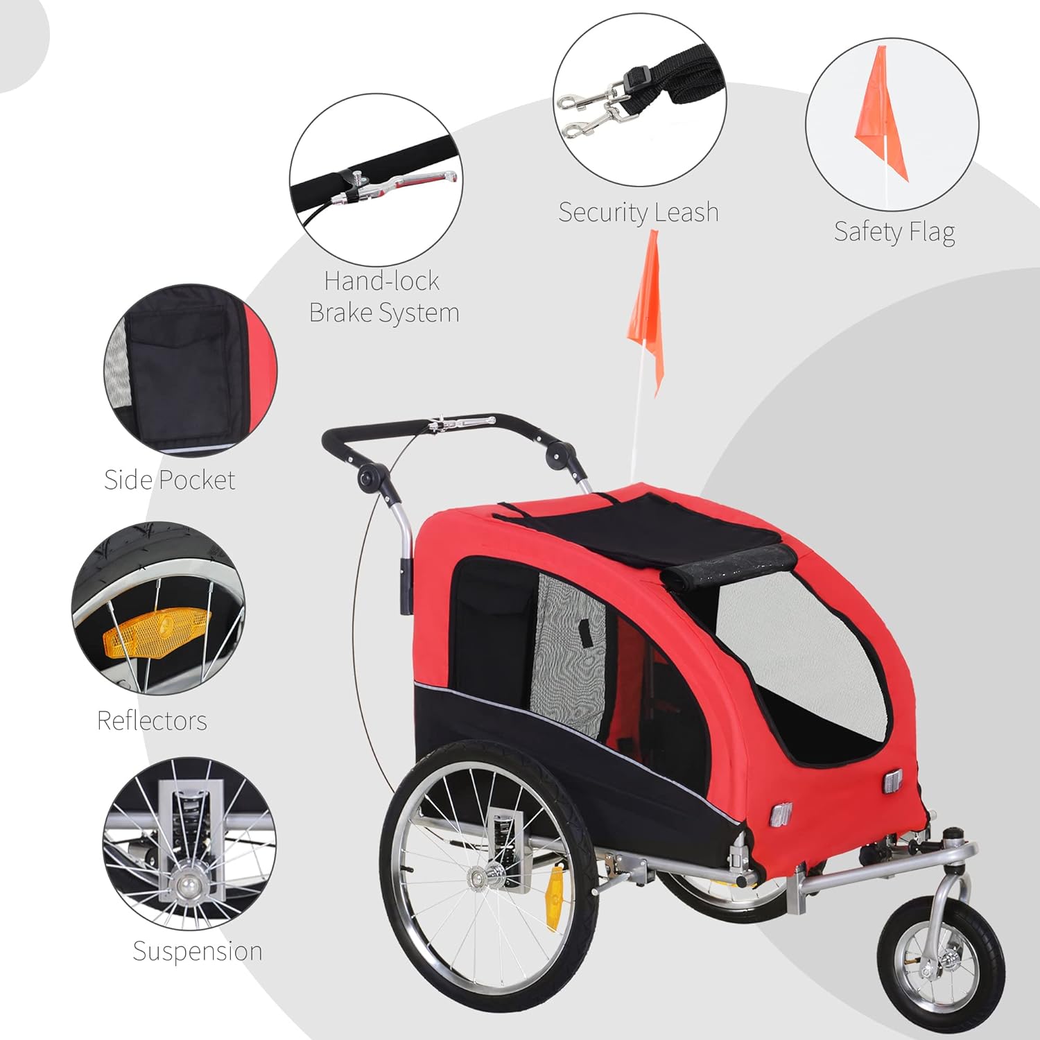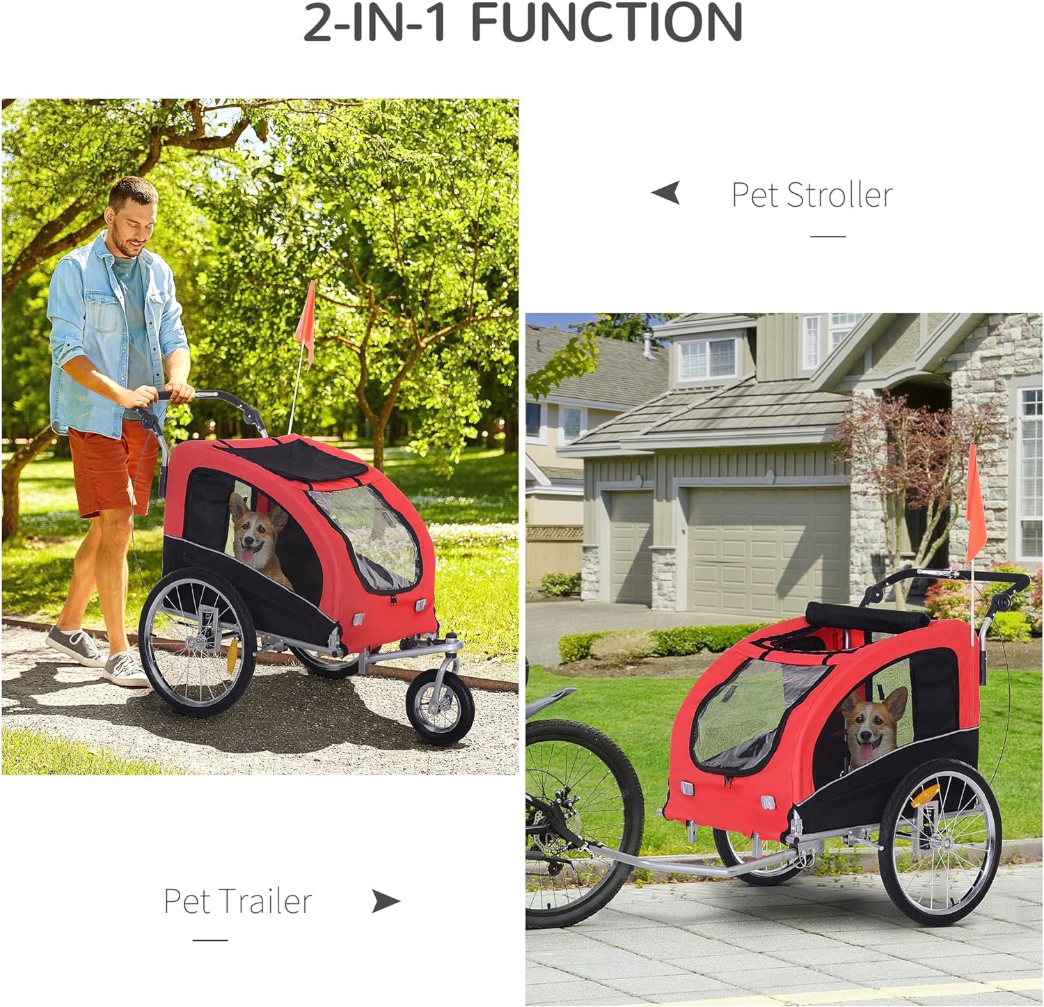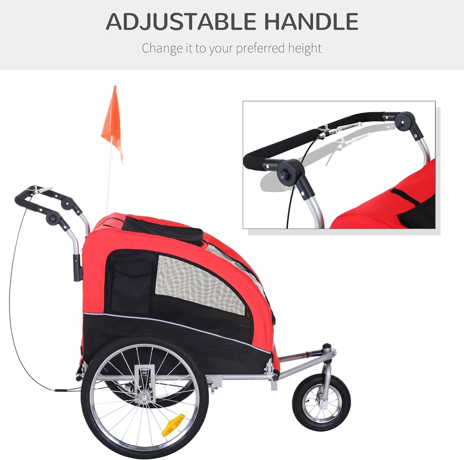 Dog Bike Trailer 2-In-1 Pet Stroller With Canopy And Storage Pockets, Red