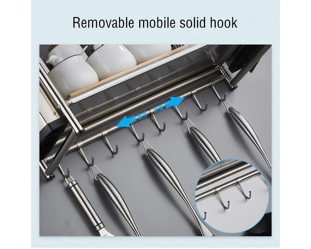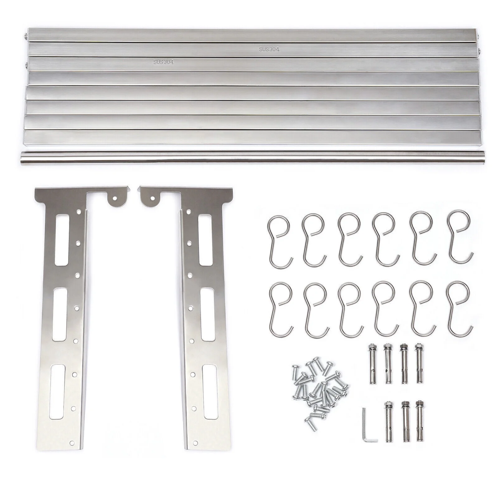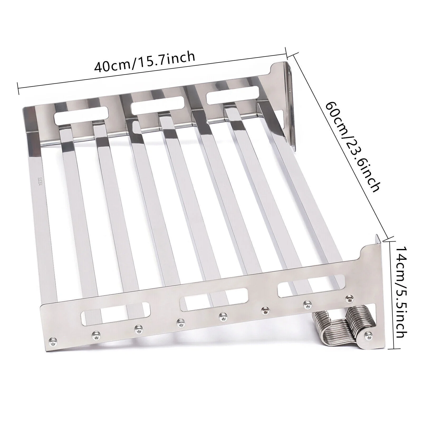 Wall Mount Microwave Oven Shelf Kitchen Item Storage Bracket W/12 Hook Stainless