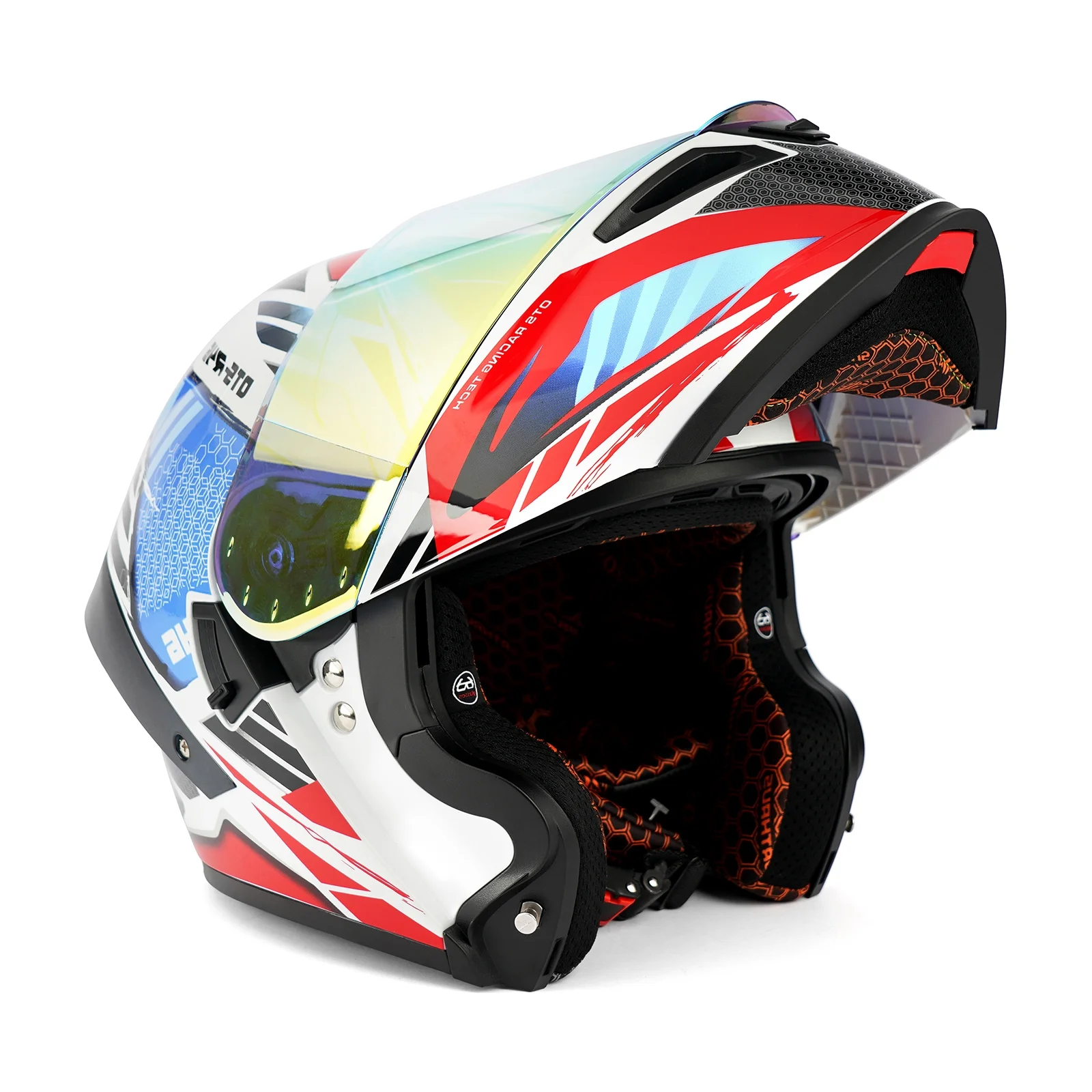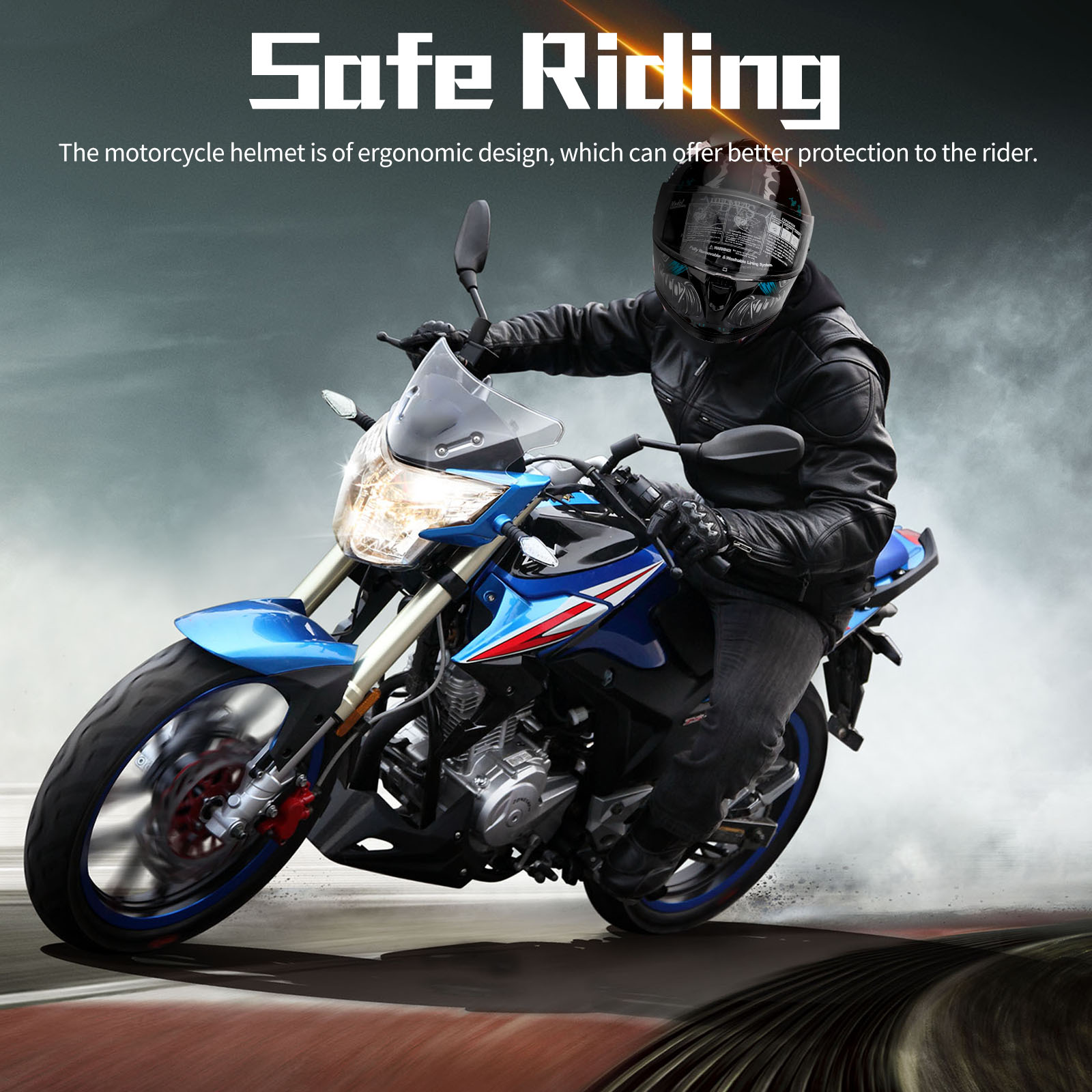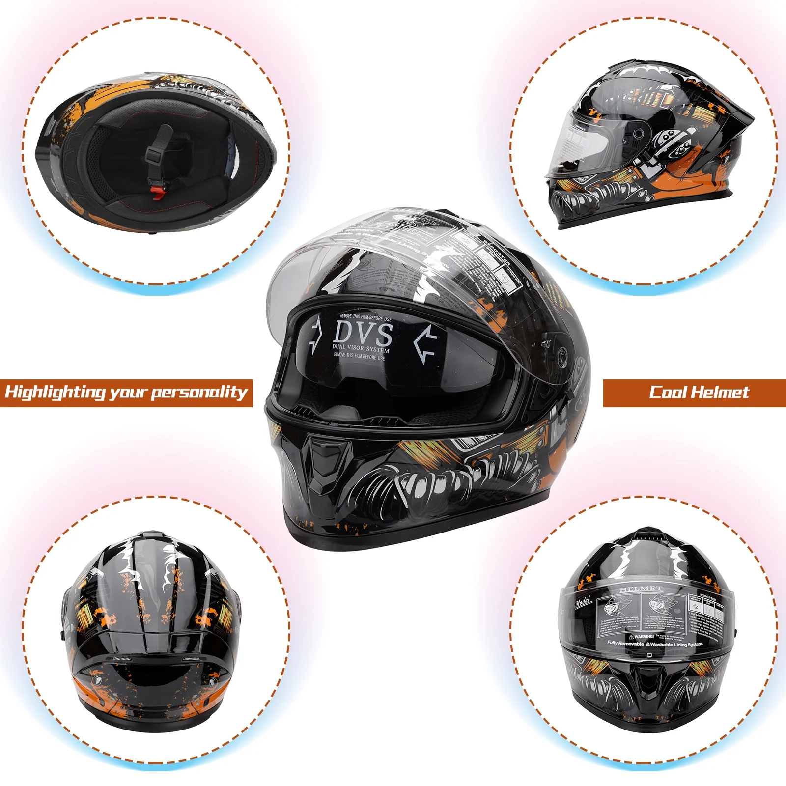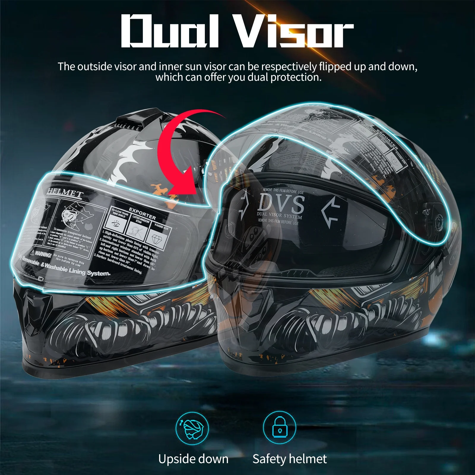 OWSOO Motorcycle Helmet Unisex Adult Dual Visor Full Face Flip Helmet for All Seasons