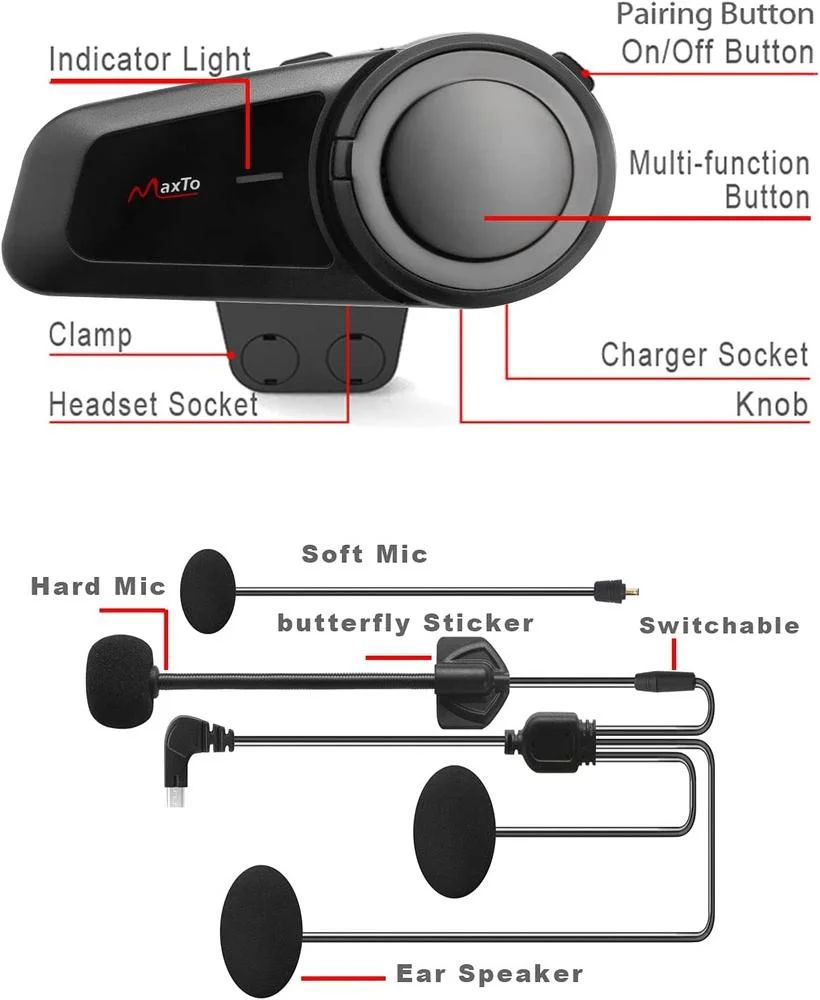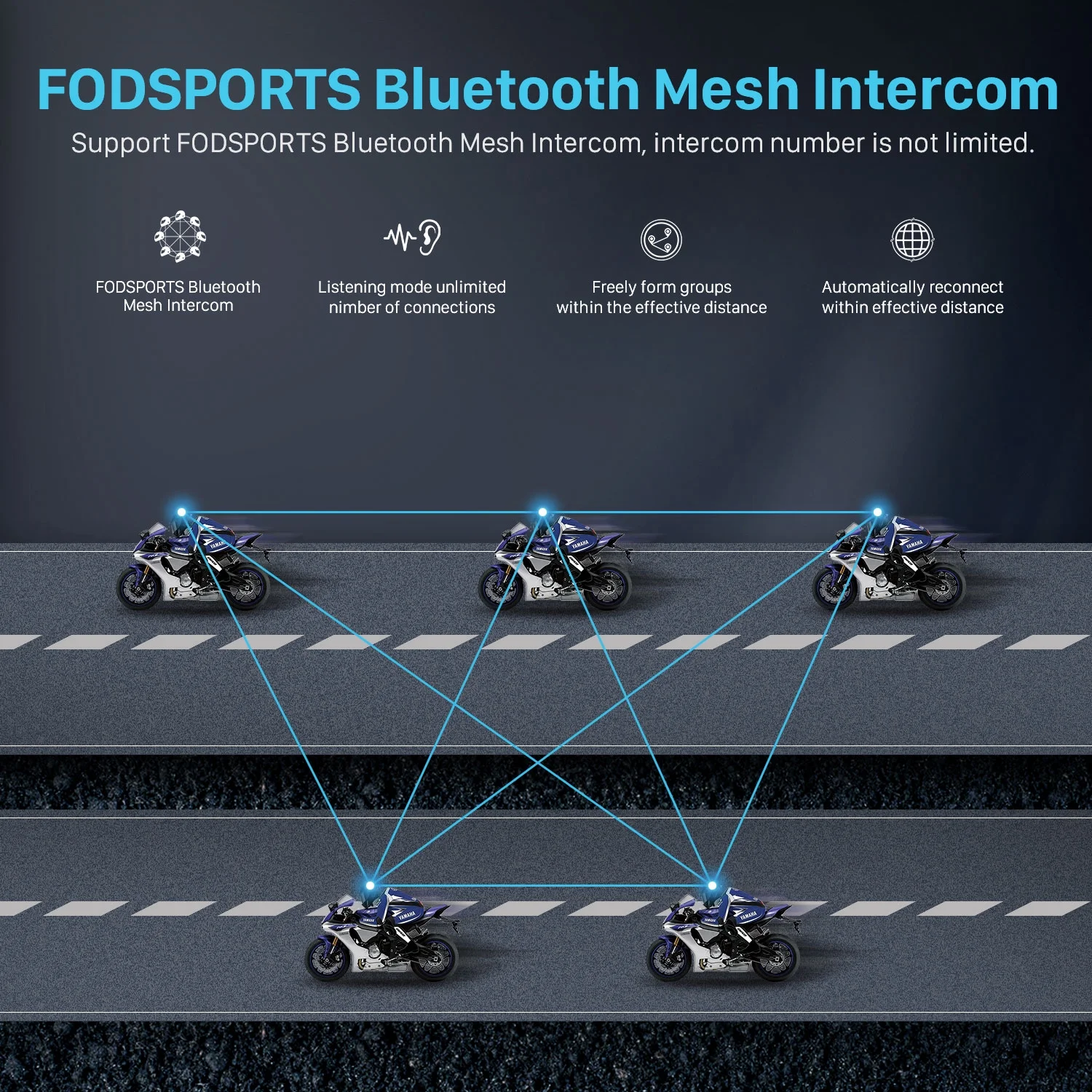 Fodsports FX 10C Motorcycle Bluetooth Headset Helmet Intercom 1000m Mesh Wireless Communication Interphone