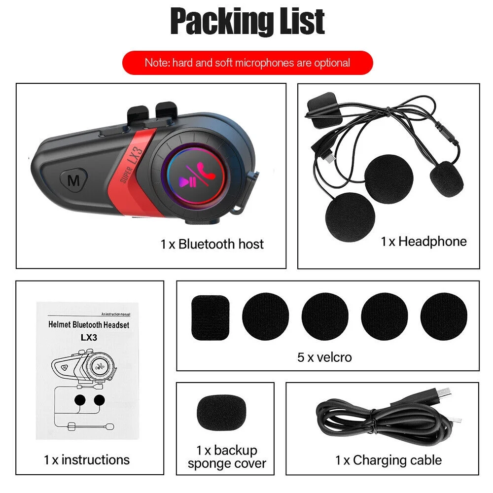 kydely Motorcycle Helmet Headset Wireless Bluetooth Headphone Speaker Hands-Free(Red)