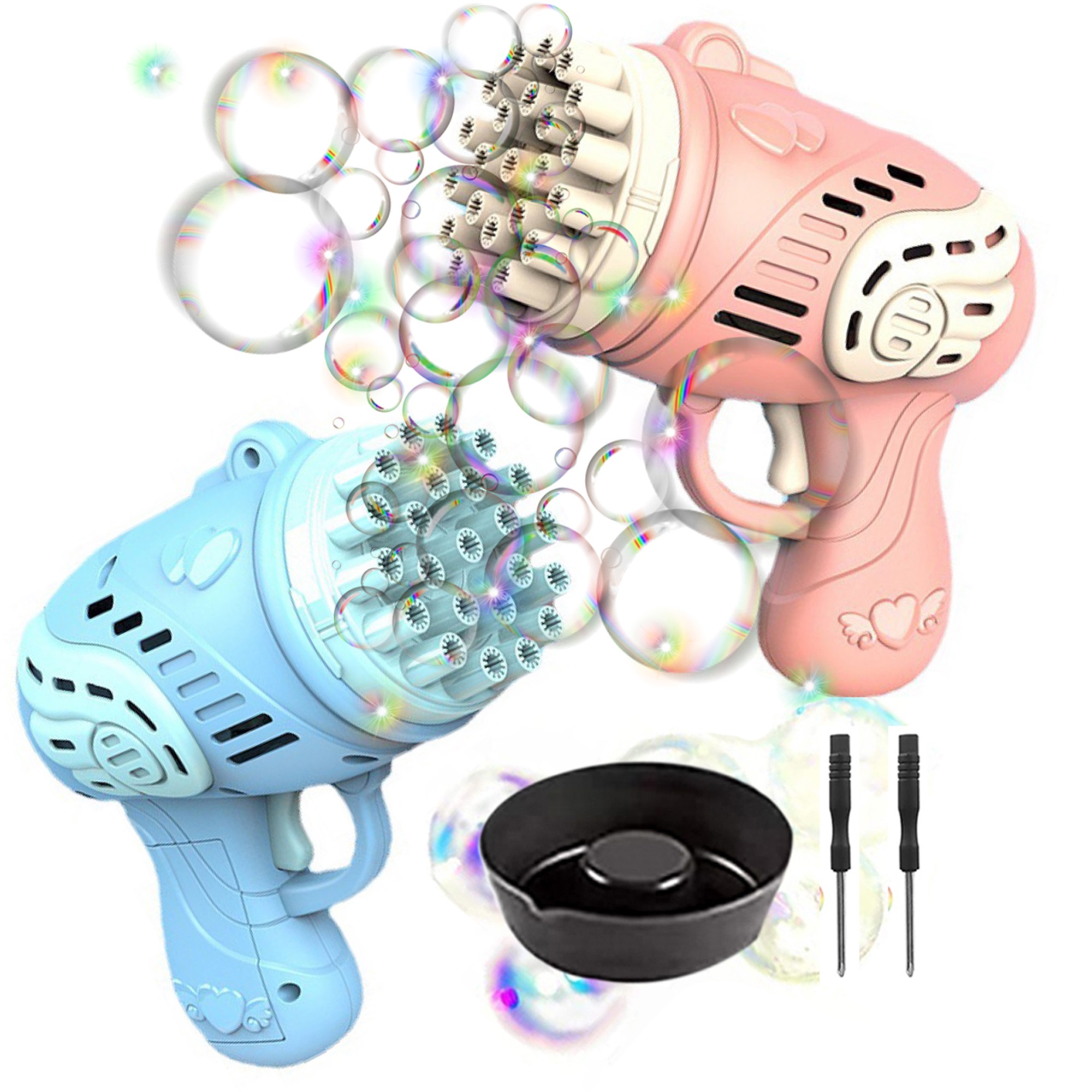2 Pcs Gatling Bubble Machine Bubbler Maker Children's Automatic Bubble Blowing Toy Gun Blue Color