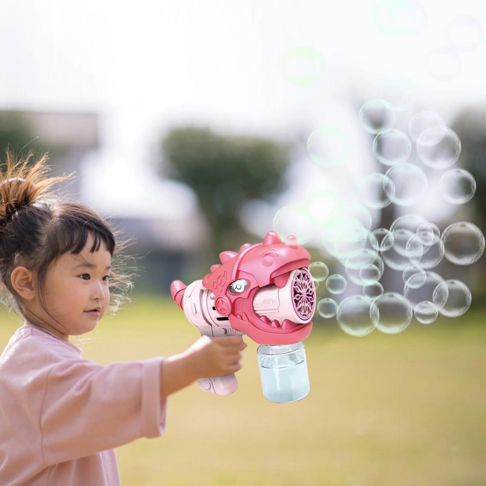 Cocobaby Shark Bubble Toy with Light, Bubble Maker Machine for Summer Indoor Outdoor Activity Electric Automatic Bubble Blaster Party Favors Gift, TIK Tok Gatling Bubble Blower Toys for Kids -Pink