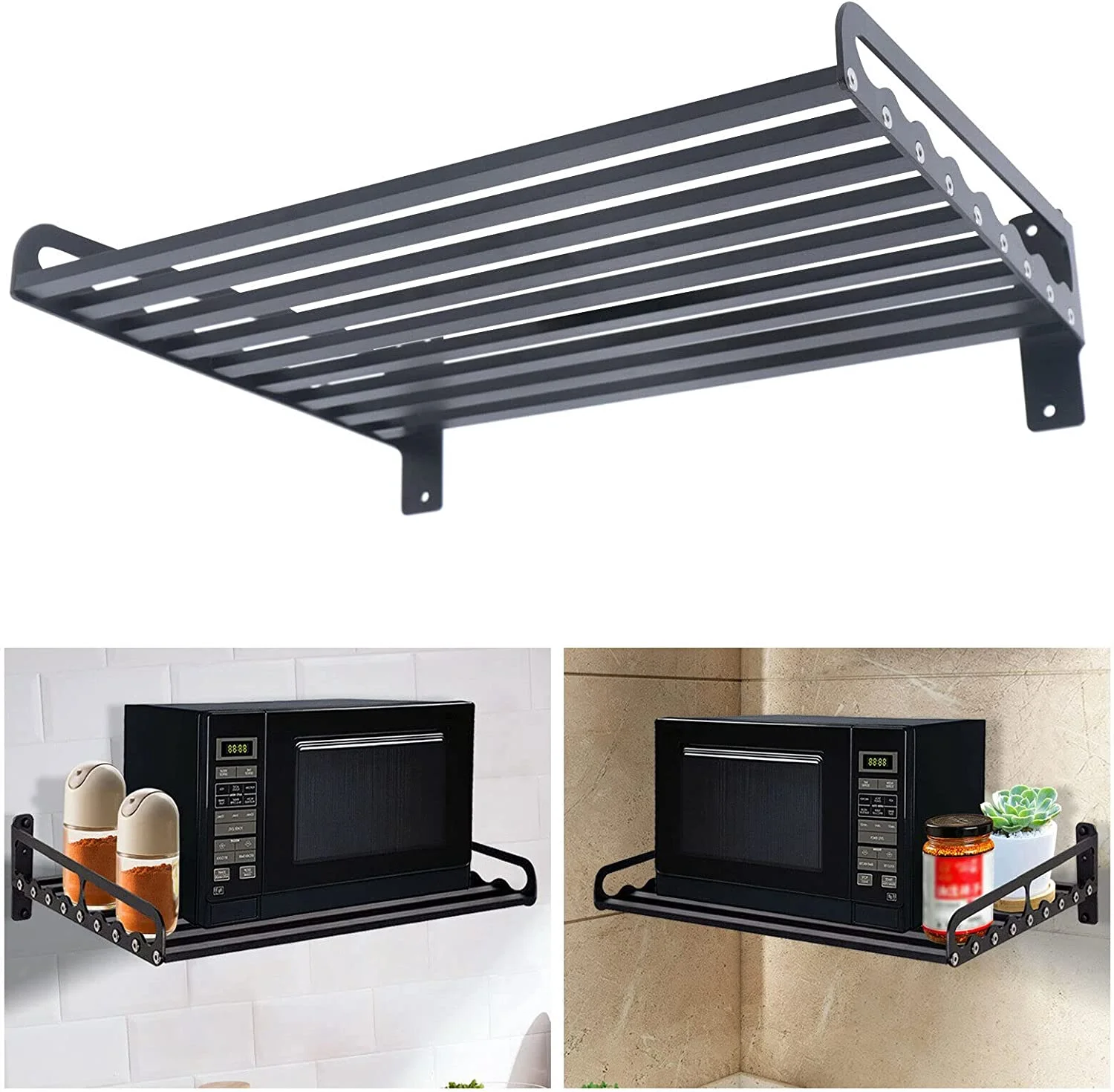 Black Wall Mounted Microwave Oven Bracket Kitchen Cooker Holder Storage Rack Aluminum