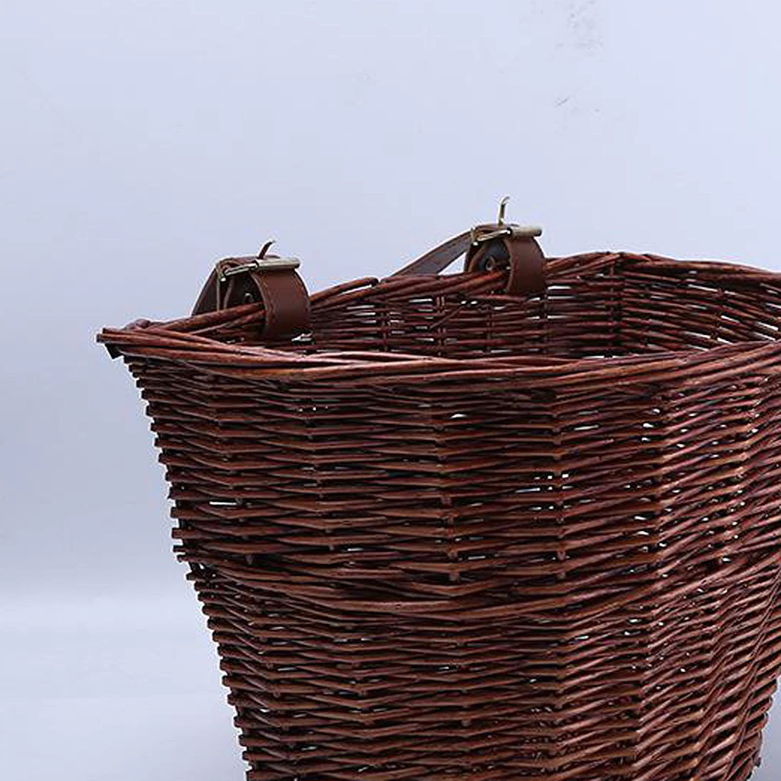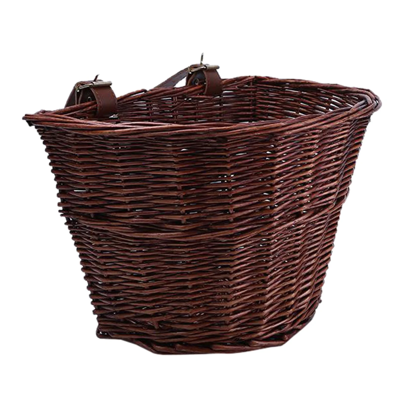 9.75 x 15.75 x 11.75 in. Wicker Front Bike Basket with Faux Leather Straps, Brown