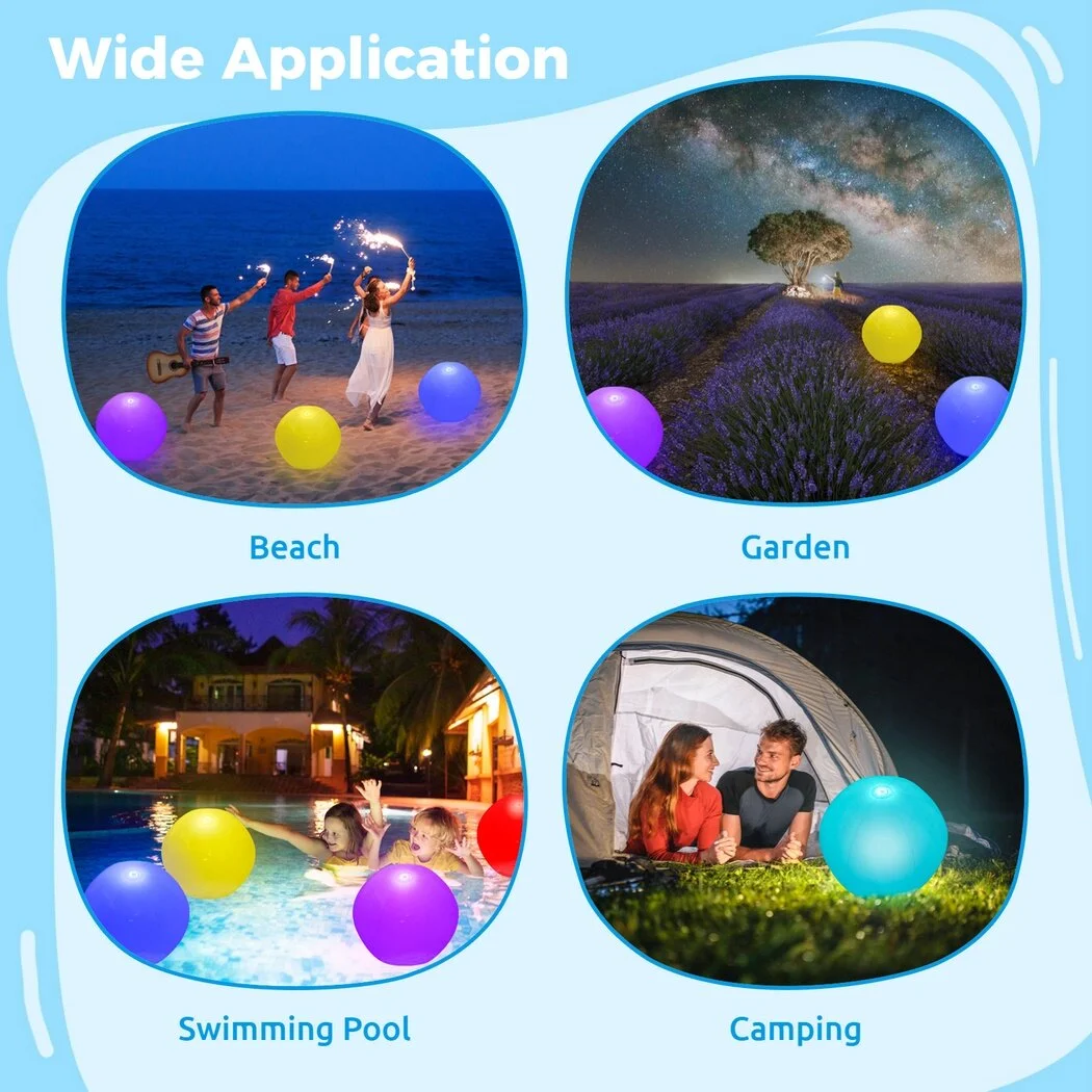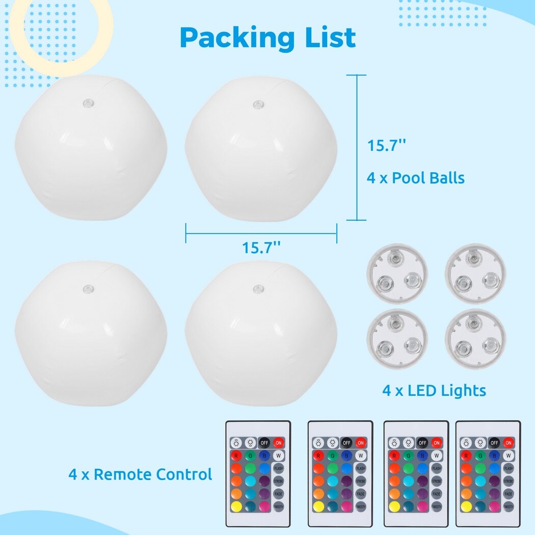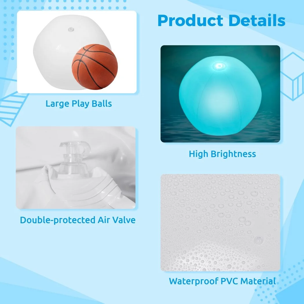 Swimming Pool Ball Lights, 4 Packs Luminous Inflated Beach Balls for Adults, 16 Light Modes Glow in the Dark Pool Beach Games Ball Toys for Outdoors Decoration, Giant Beach Balls