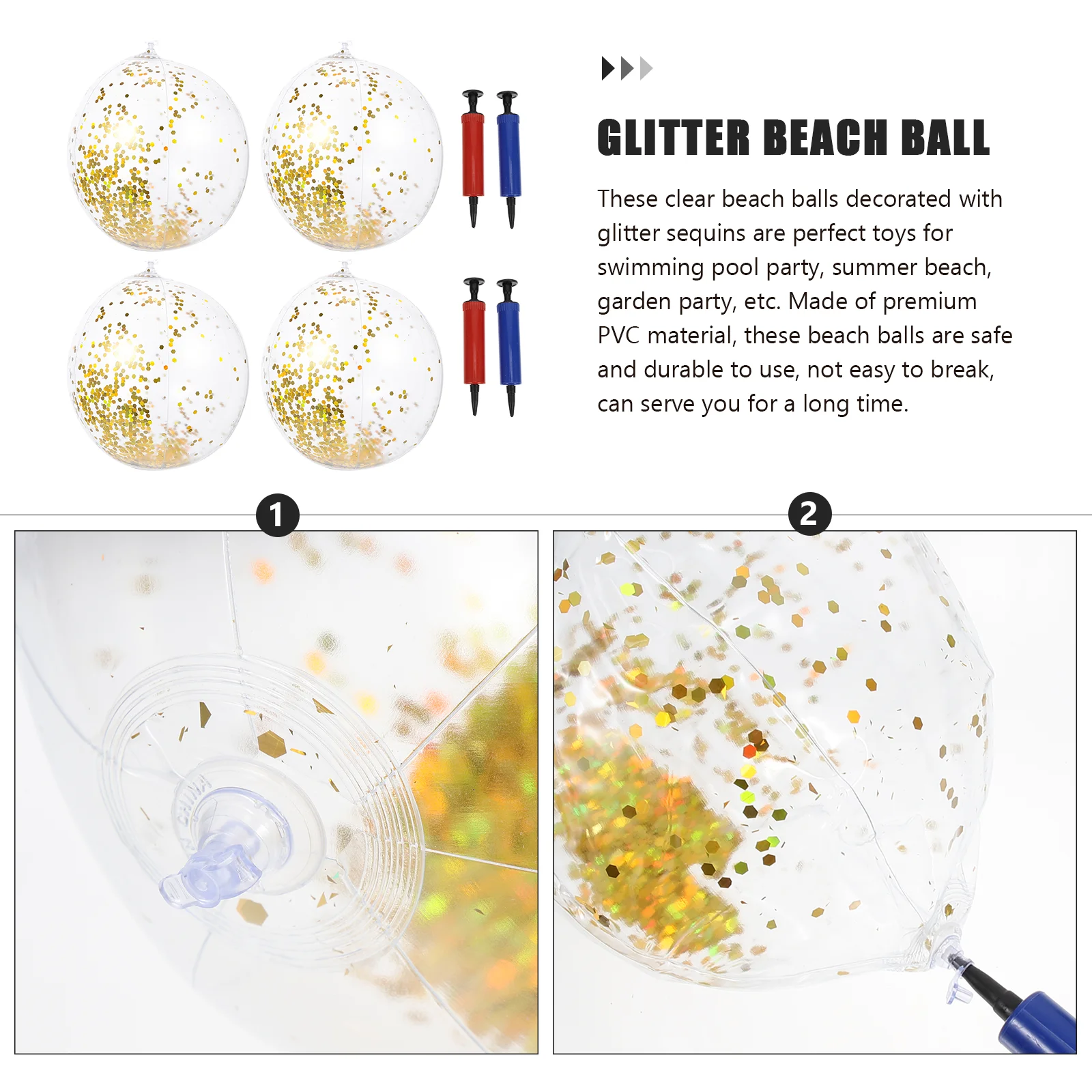 Beach Toys for Kids Sequined Ball Inflatable Swimming Pools outside Balls Giant Outdoor The Summer Child Party 4 Pcs