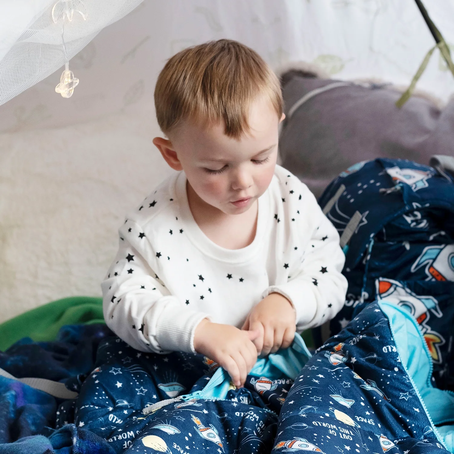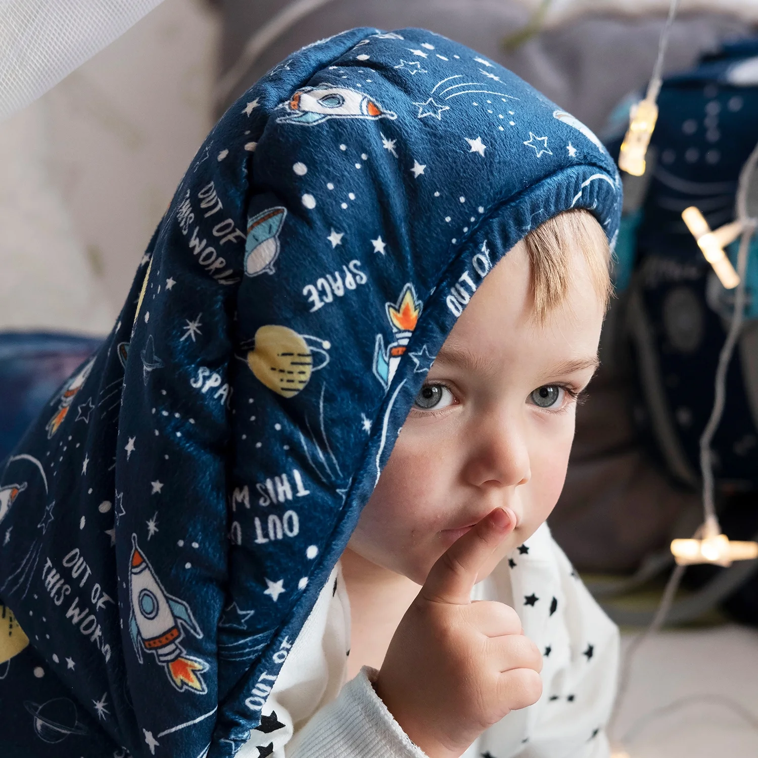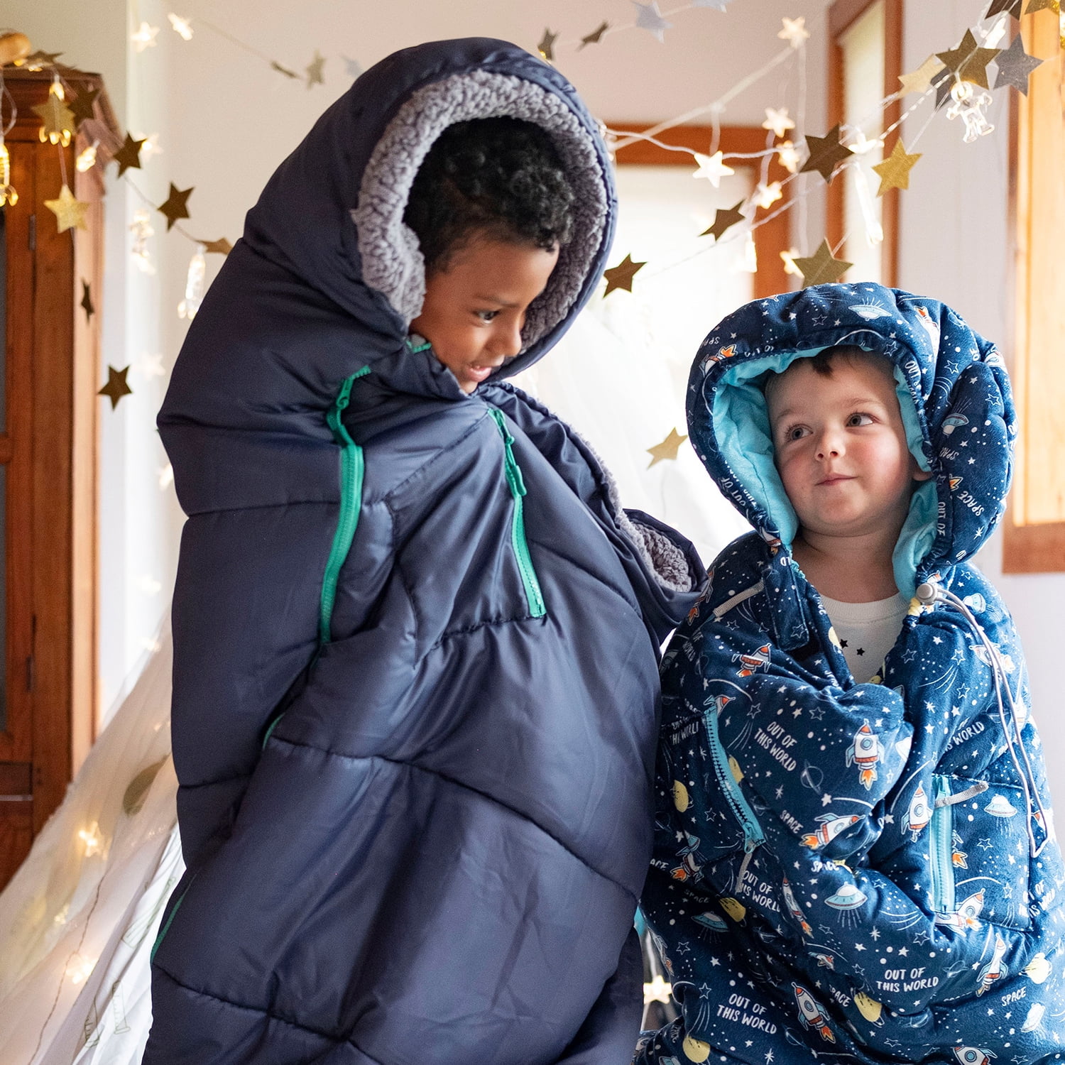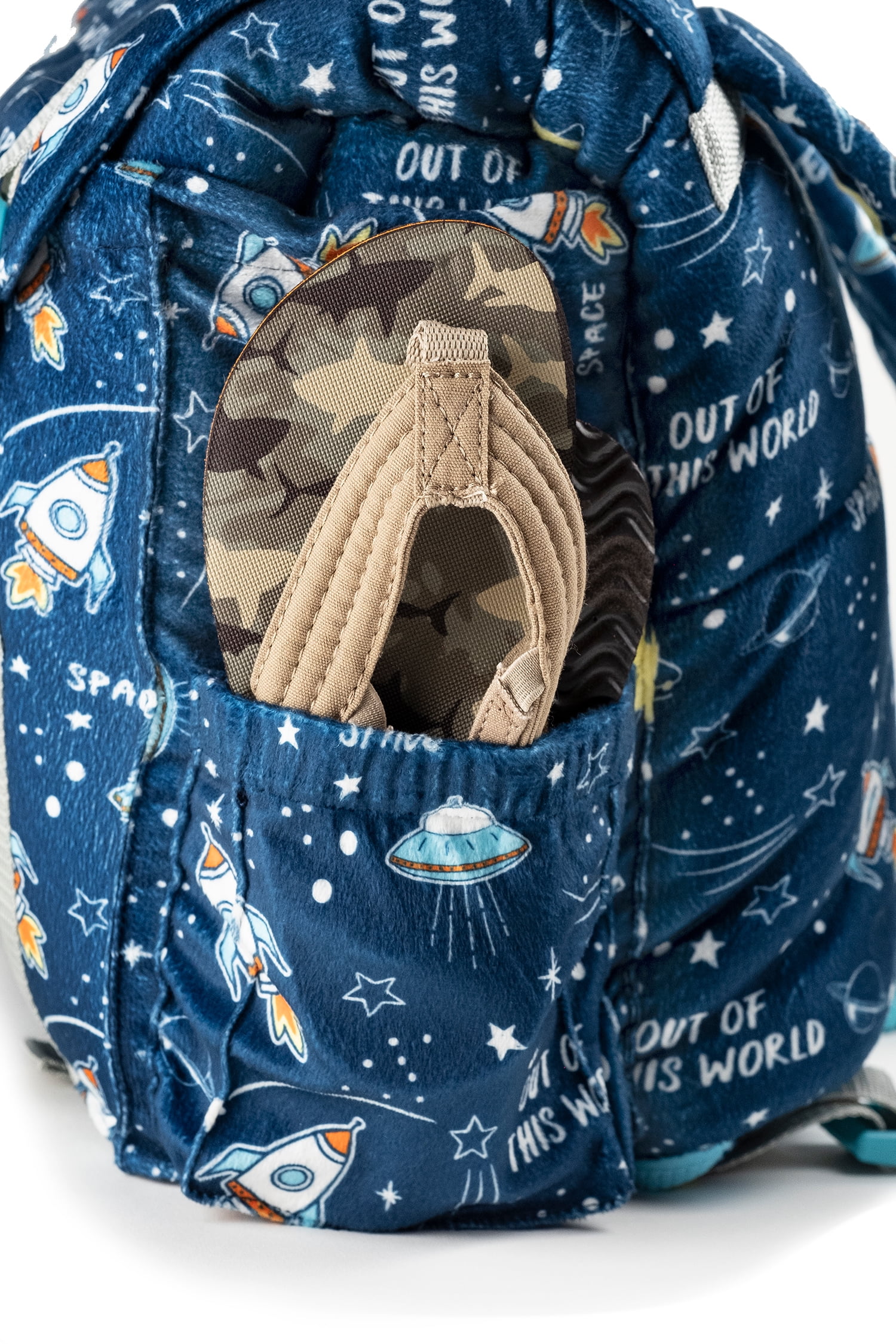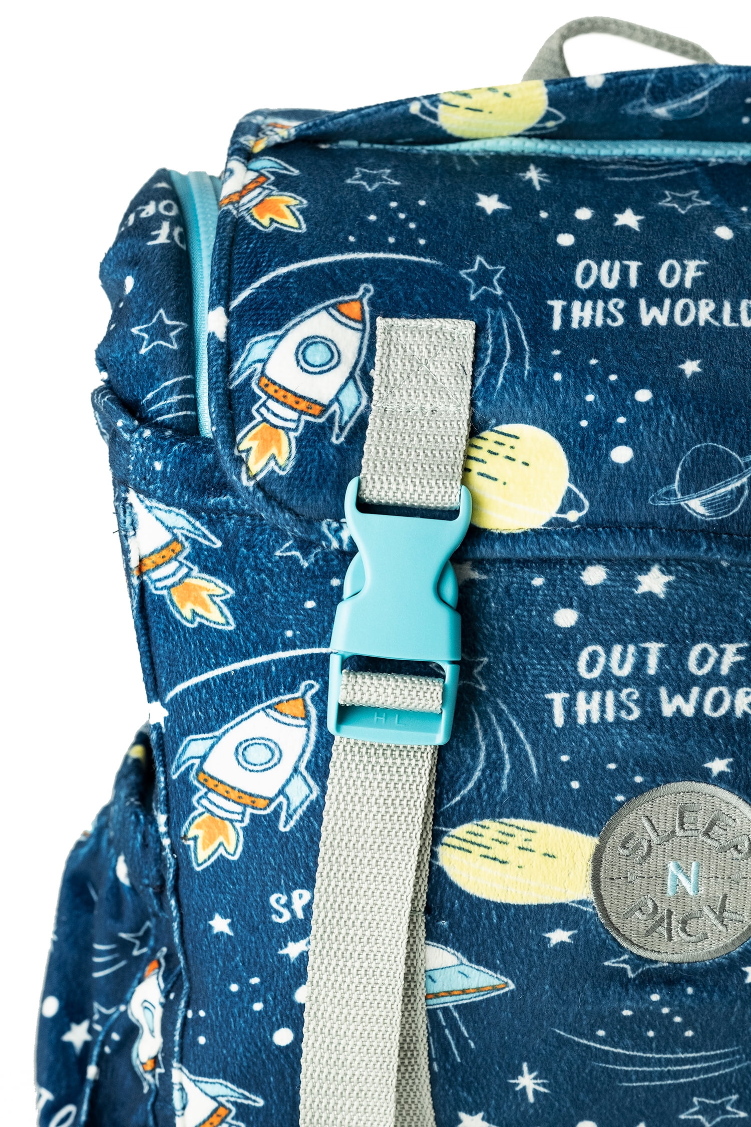 Mimish Sleep-N-Pack, 50 F Packable Kid's Sleeping Bag & Backpack, Space & Rockets Print