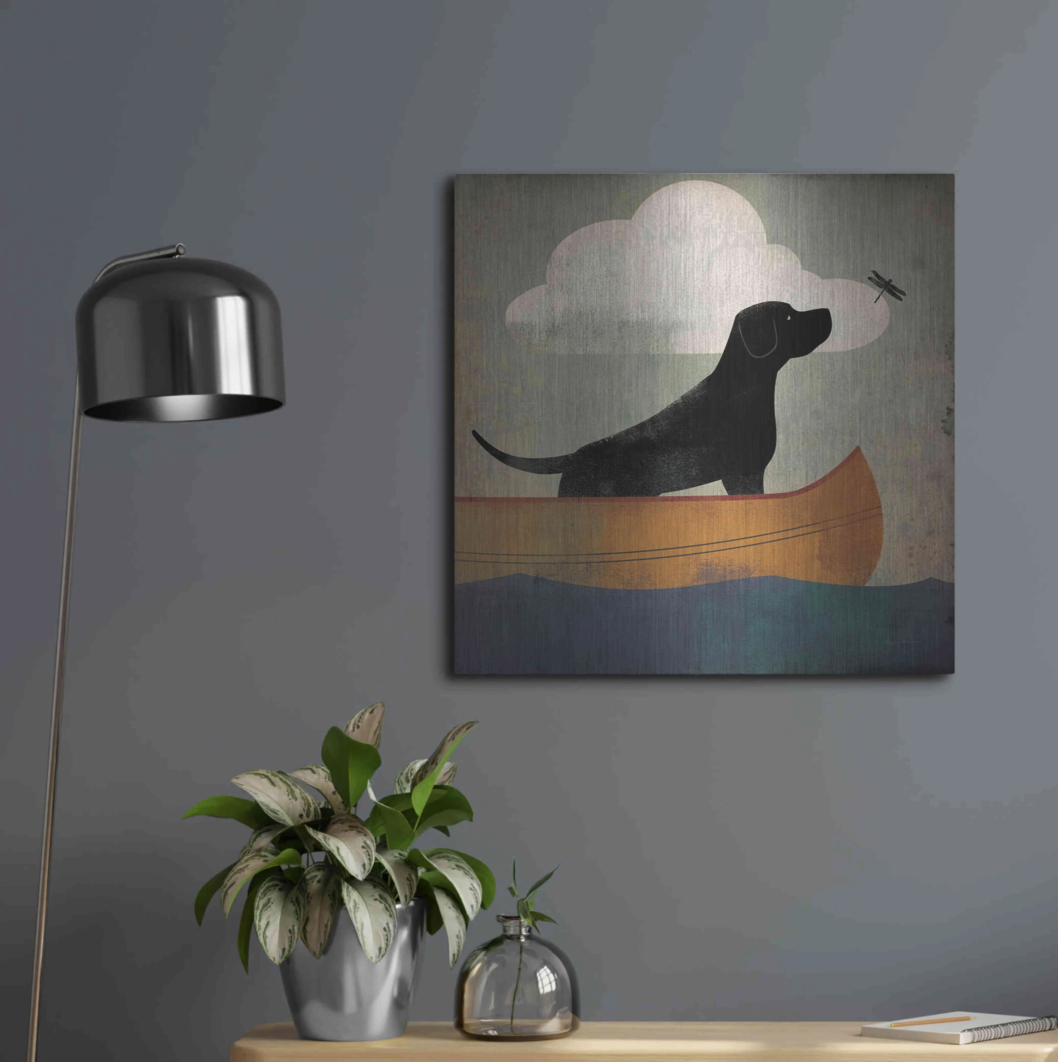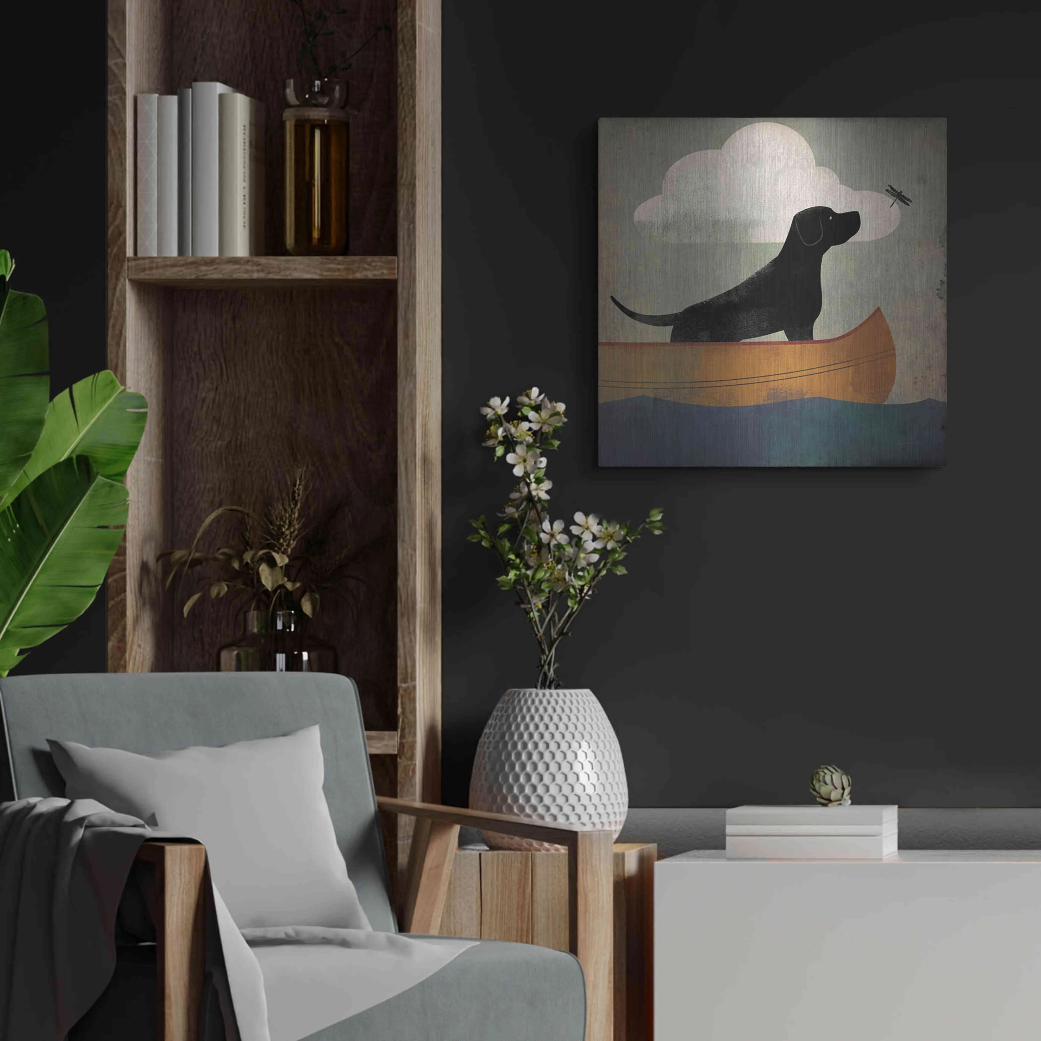 Luxe Metal Art 'Black Dog Canoe Ride' by Ryan Fowler, Metal Wall Art, 24"x24"