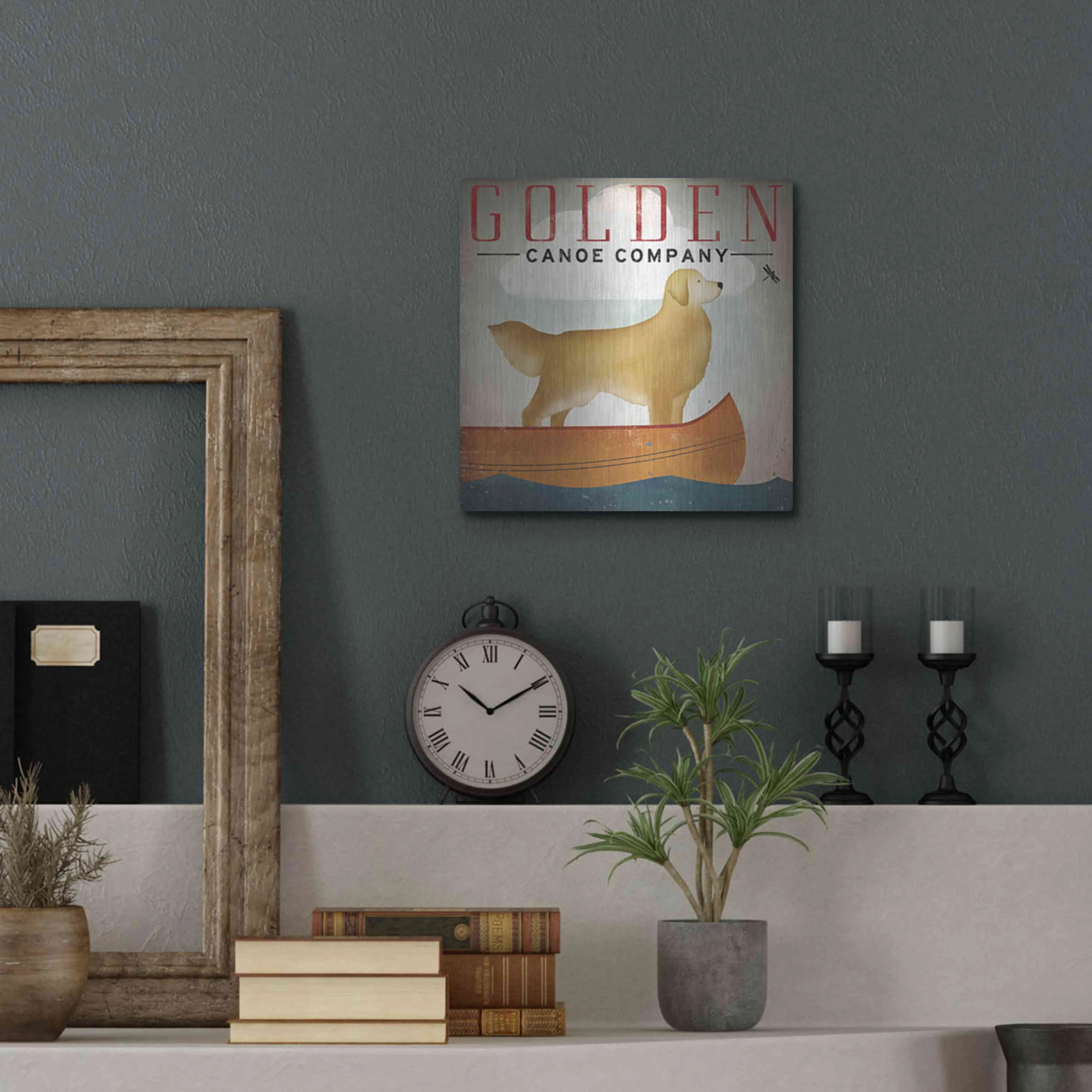 Luxe Metal Art 'Golden Dog Canoe Co Right Facing' by Ryan Fowler, Metal Wall Art, 12"x12"