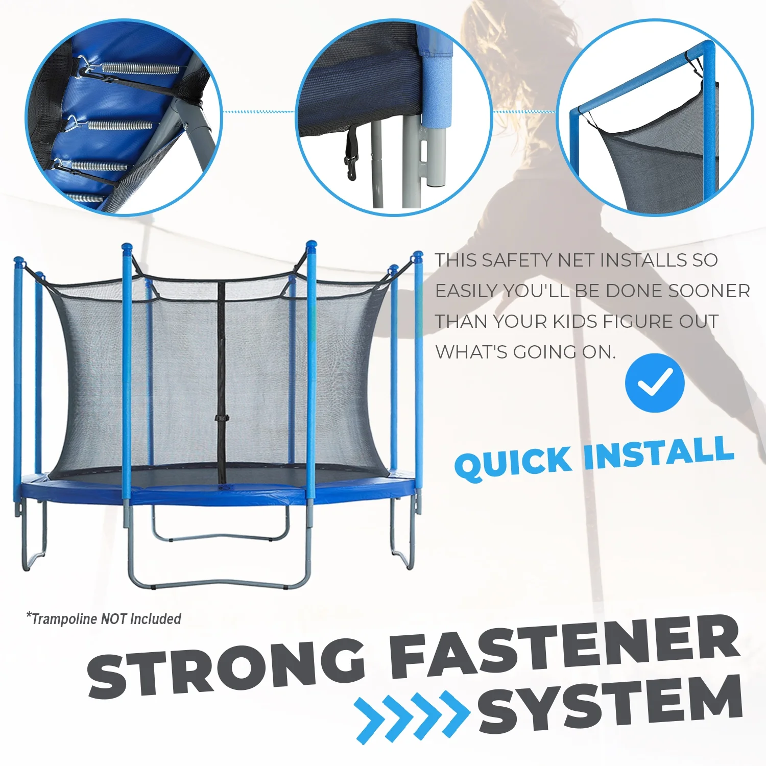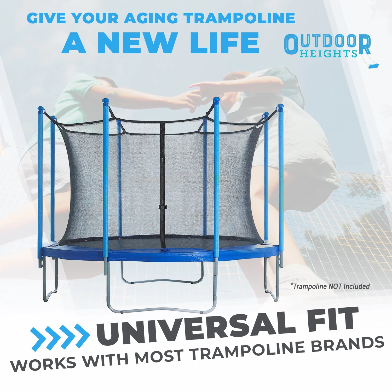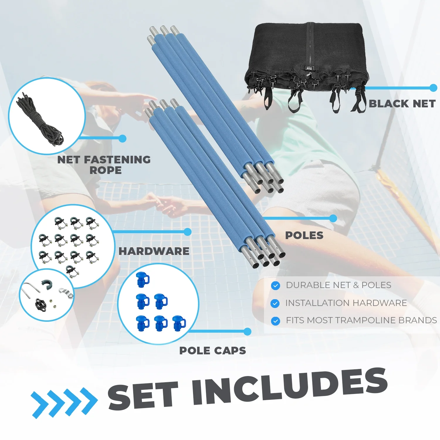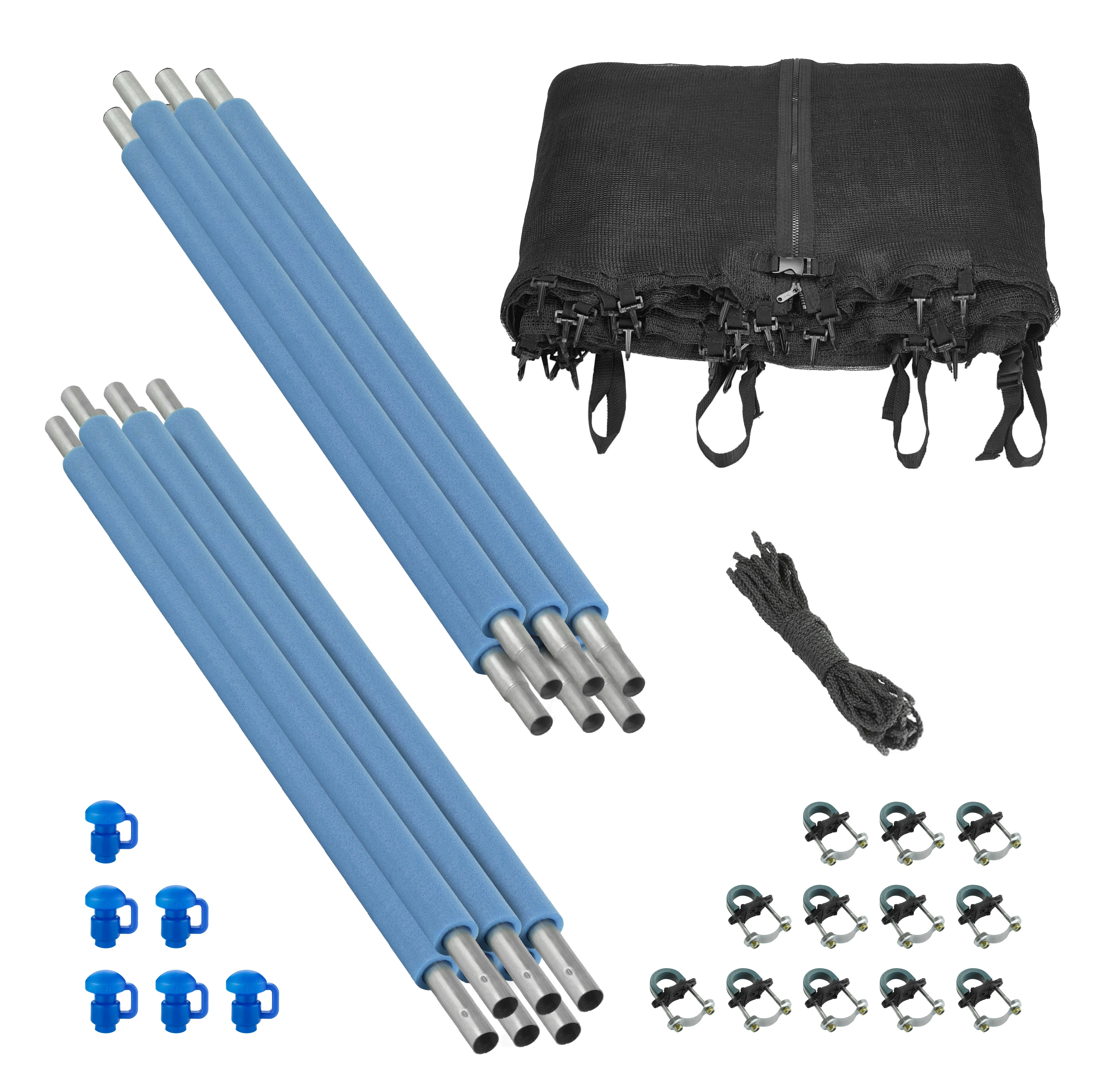 Trampoline Safety Enclosure Set of Net, 6 Poles & Hardware Fits 16 FT. Round Frame - Installs Inside Frame