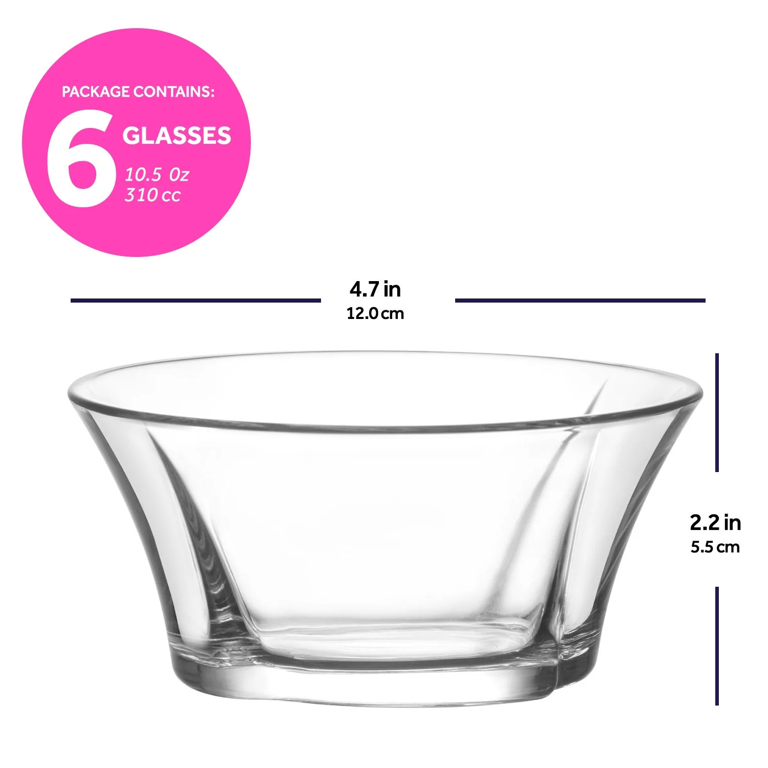 LAV Glass Snack Bowls Set of 6 - Clear Glass Dessert Serving Bowls 10 oz