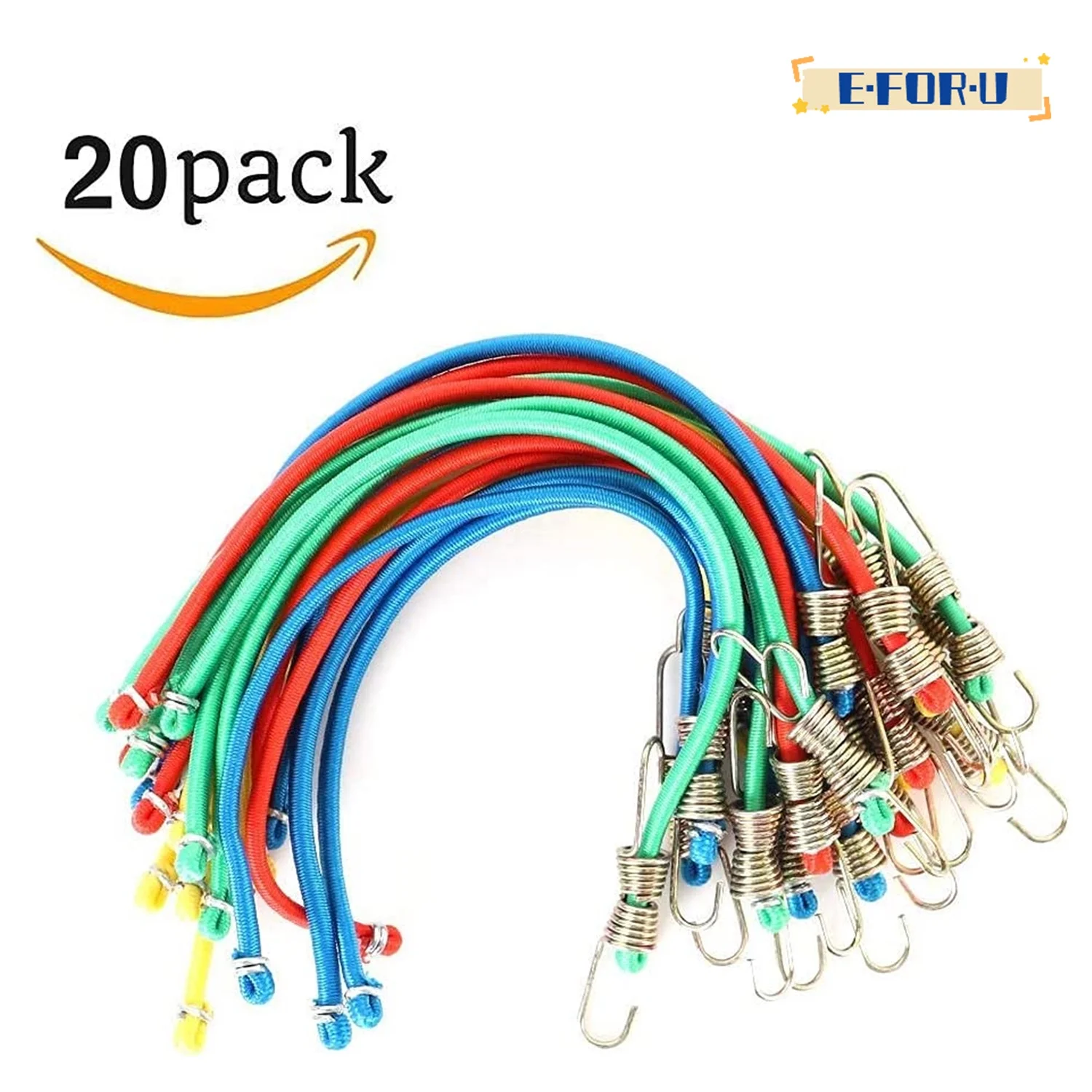20 Pack Mini Bungee Cords, 10 Inch Rubber Stretchy Bungee Cords with Hooks for Bikes