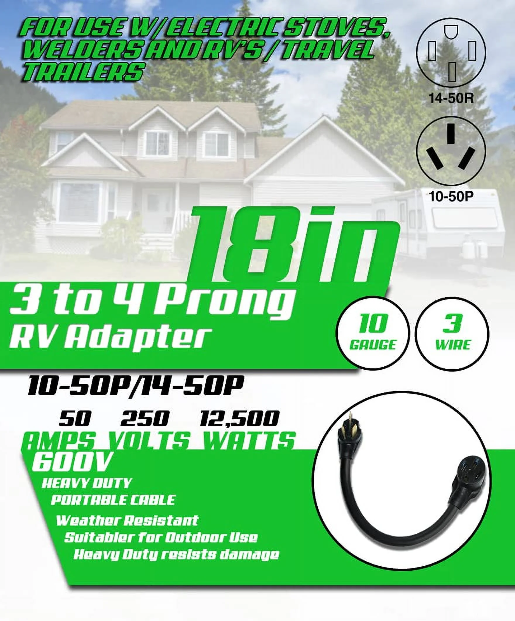 Parkworld 61438B RV to Dryer Adapter Cord RV Plug NEMA 14-50P to 10-50R Dryer Female, 50A, 250V (15FT)
