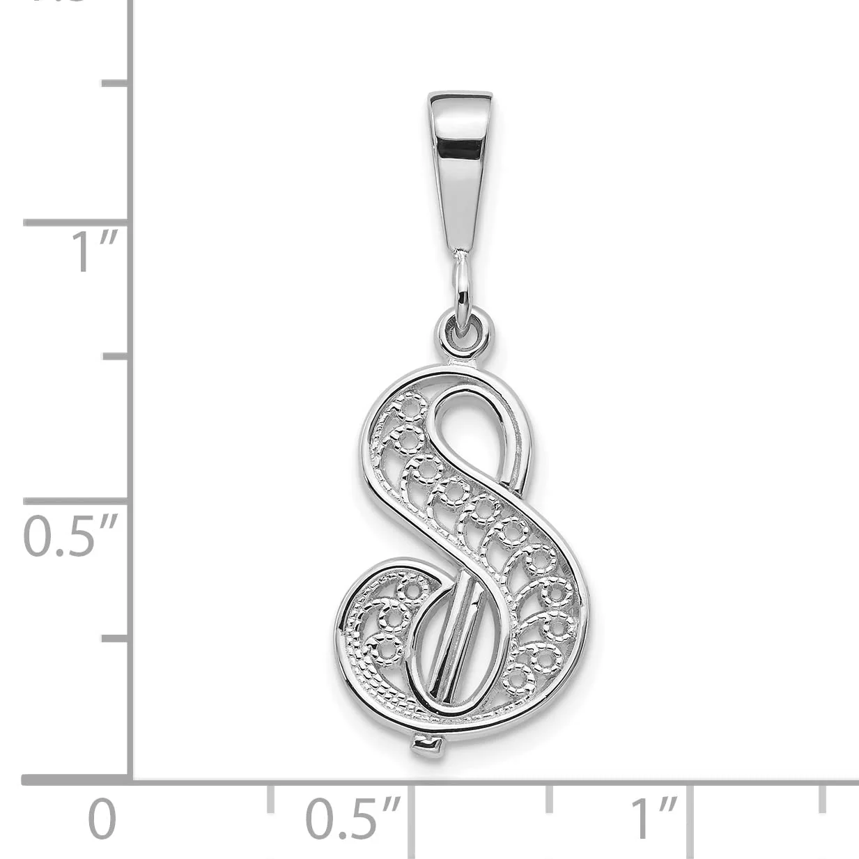 Saris and Things 10K White Gold Solid Polished Filigree Initial S Pendant