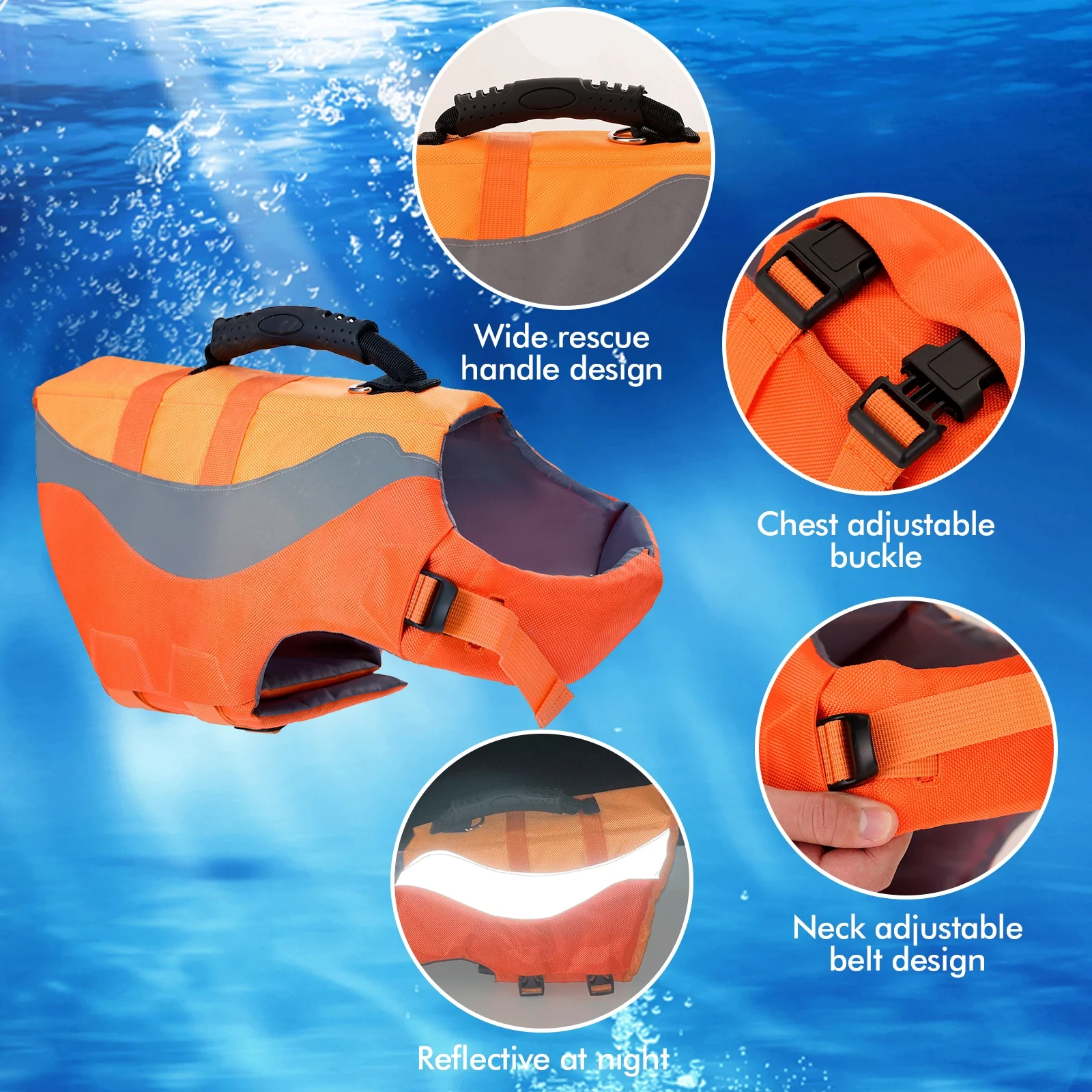 3pcs Dog Life Vest Reflective Puppy Safety Vest with Handle Pet Swimming Clothes