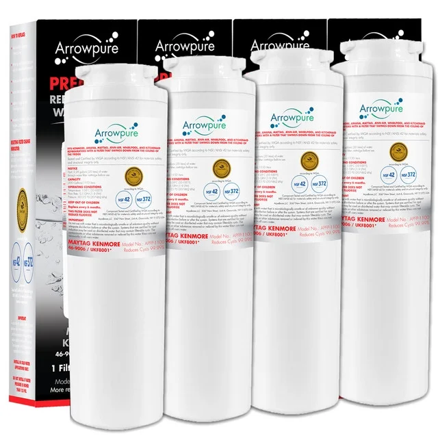 4 Pack Premium UKF8001 Refrigerator Water Filter Replacement by Arrowpure | Certified According to NSF 42&372 | Compatible with Maytag UKF8001, 67006464, 4396395, 13040210, Kenmore 469006