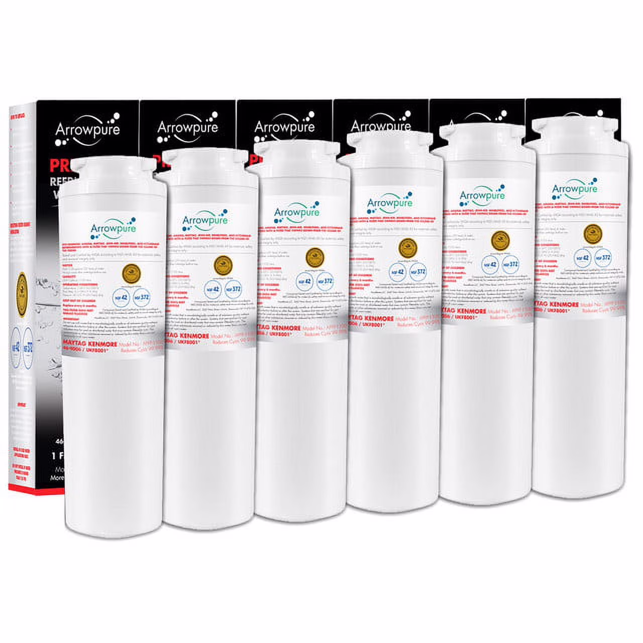 6 Pack Premium UKF8001 Refrigerator Water Filter Replacement by Arrowpure | Certified According to NSF 42&372 | Compatible with Maytag UKF8001, 67006464, 4396395, 13040210, Kenmore 469006