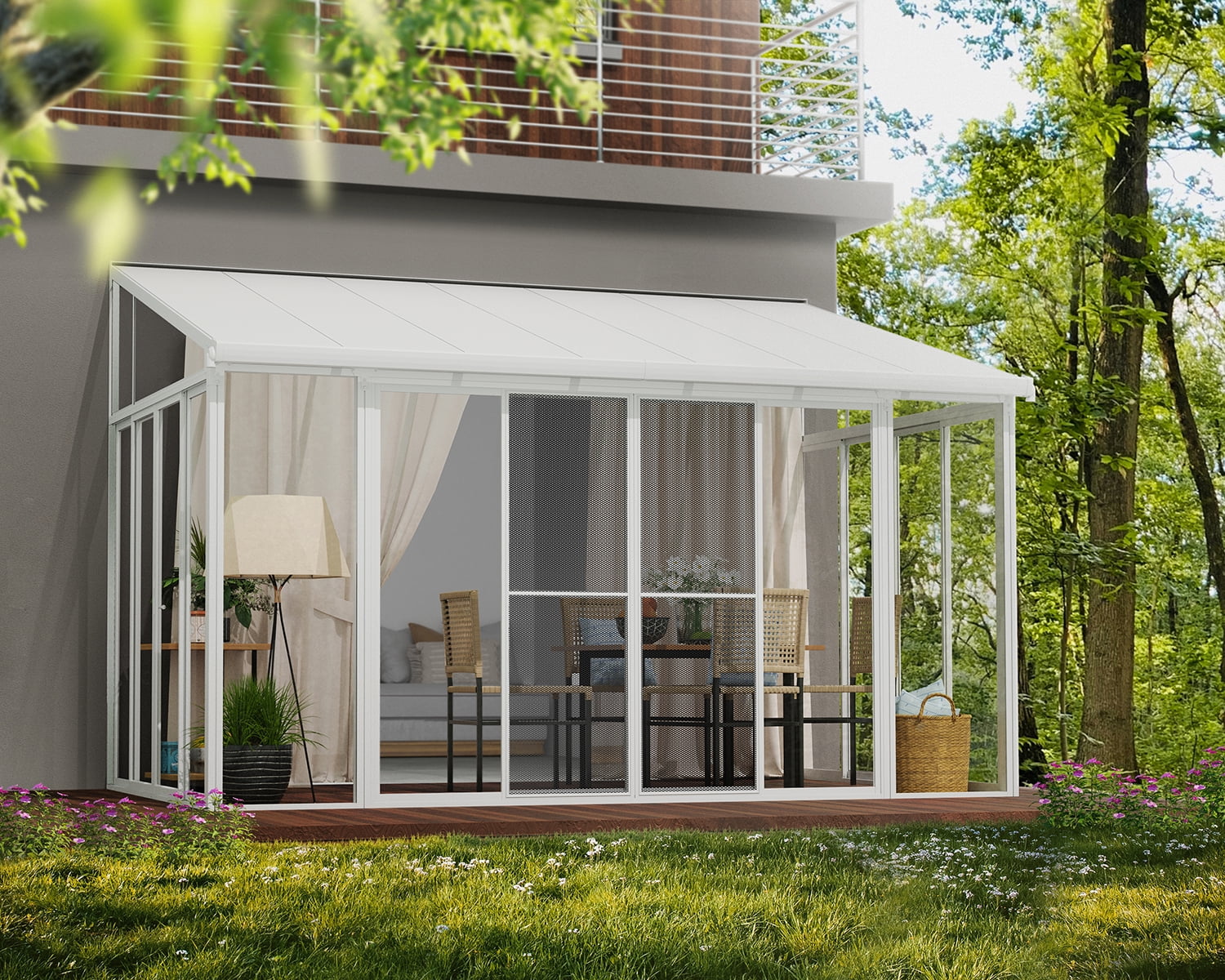 Palram - Canopia SanRemo 10' x 14' Patio Enclosure - White with Screen Doors