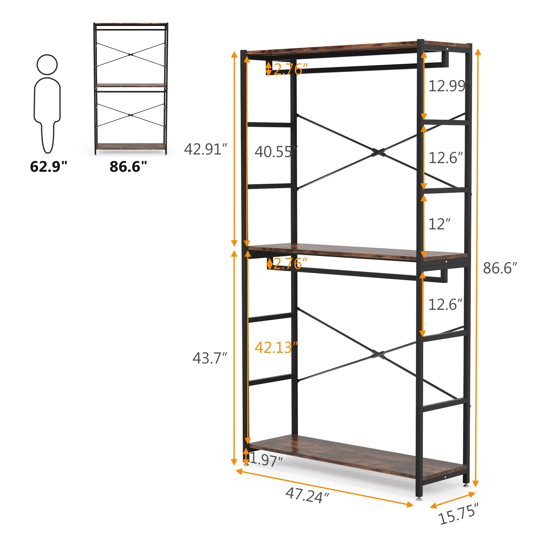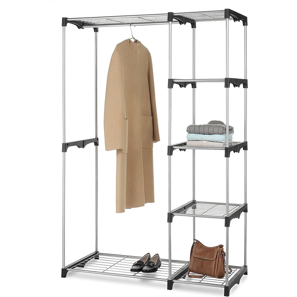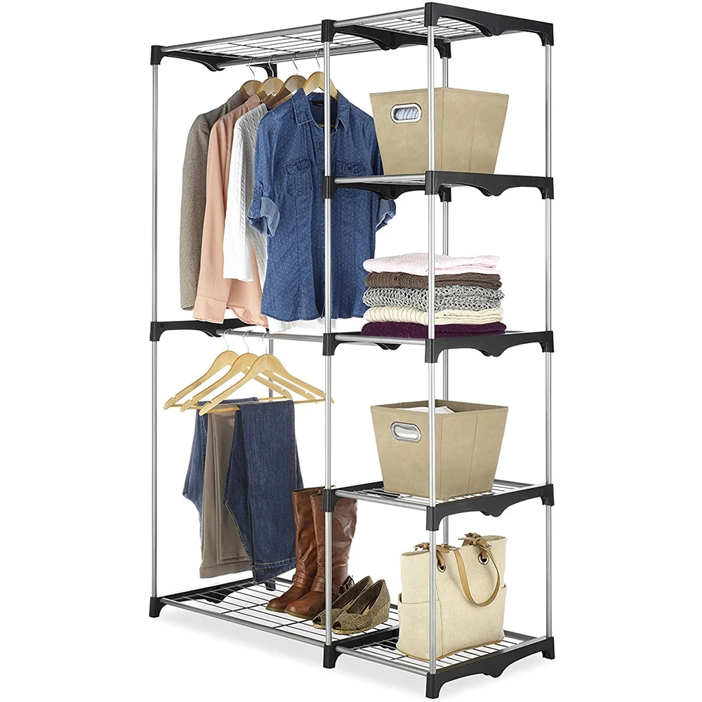 86 inches Double Rod Closet Organizer, Tall Freestanding 3 Tiers Shelves Clothes Garment Racks