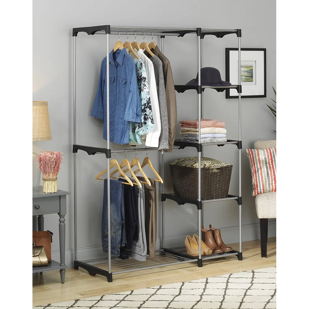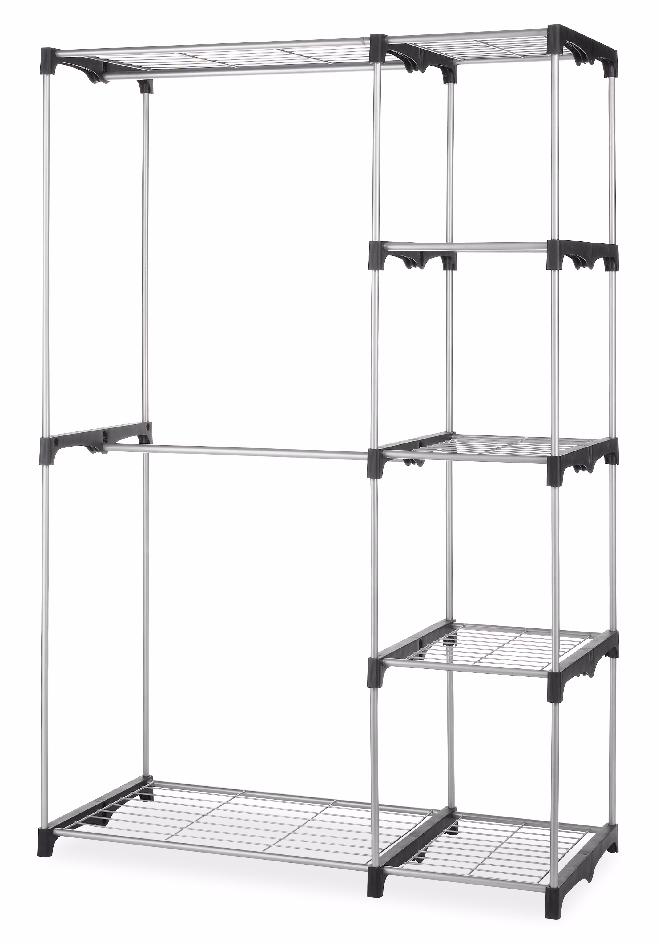 Whitmor Double Rod Closet System, Metal with Resin Connectors, Silver and Black