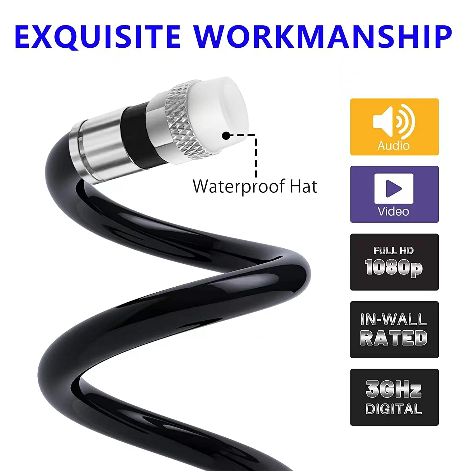 SatelliteSale RG6 Trishield 77% Coaxial Cable with Messenger Wire PVC Black 1000 feet