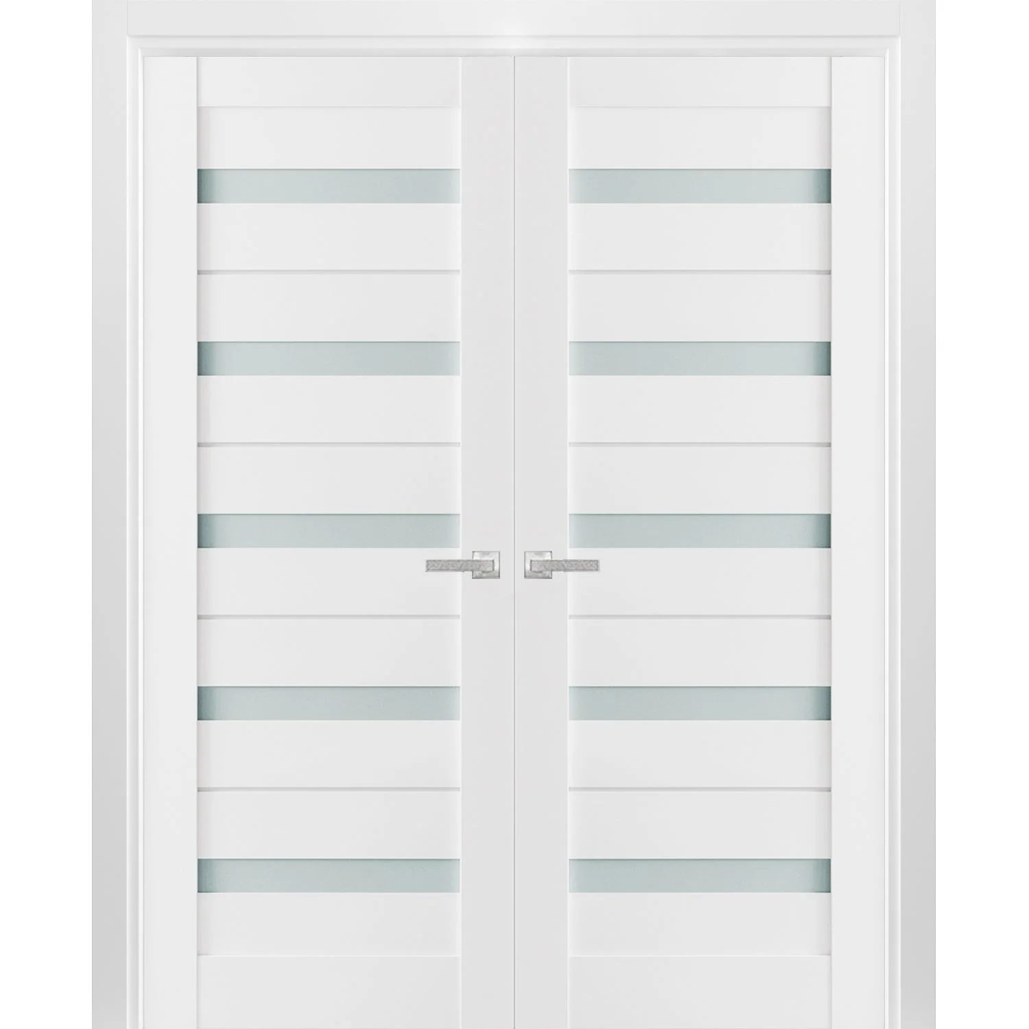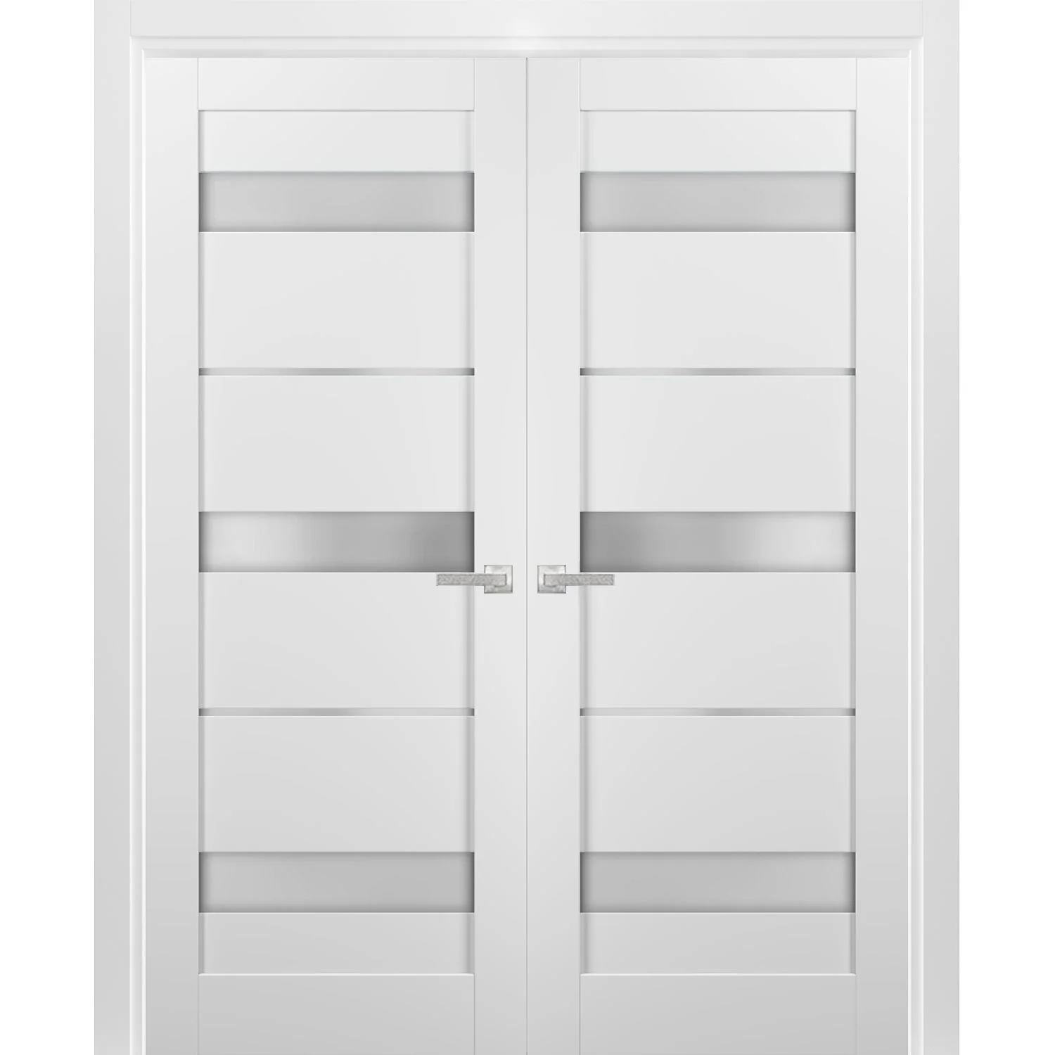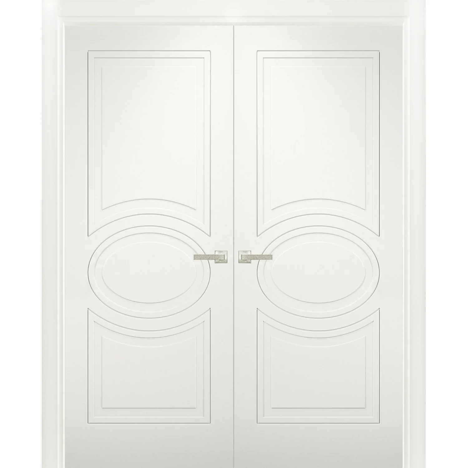 Solid French Double Doors 36 x 84 inches / Mela 7001 Matte White / Wood Solid Panel Frame / Closet Bedroom Modern Doors