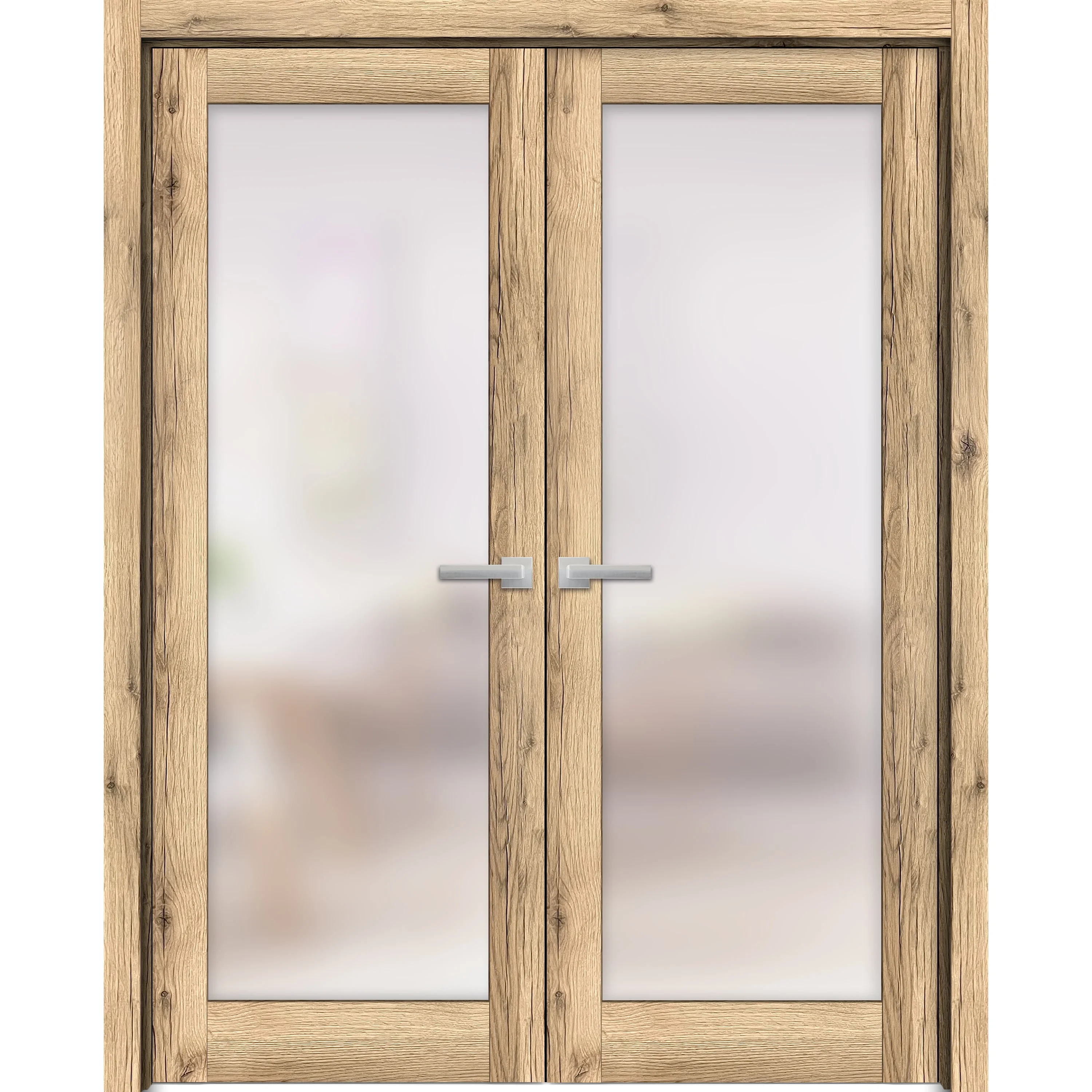 Solid French Double Doors 36 x 84 inches | Planum 2102 Oak | Wood Solid Panel Frame Trims | Closet Bedroom Sturdy Doors