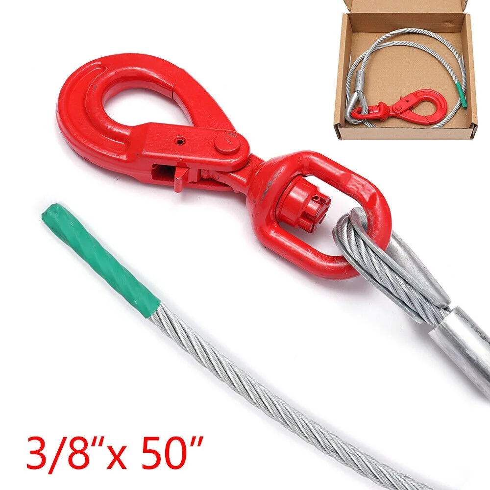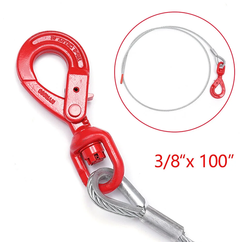 DENEST Wire Rope Steel Core Winch Cable 3/8" x 50"/100" Self-Locking Hook Towing Wire