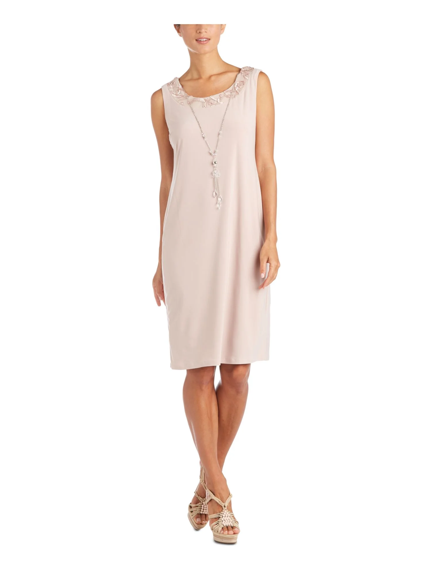 R&M RICHARDS Womens Beige Stretch Sleeveless Round Neck Above The Knee Wear To Work Sheath Dress 12