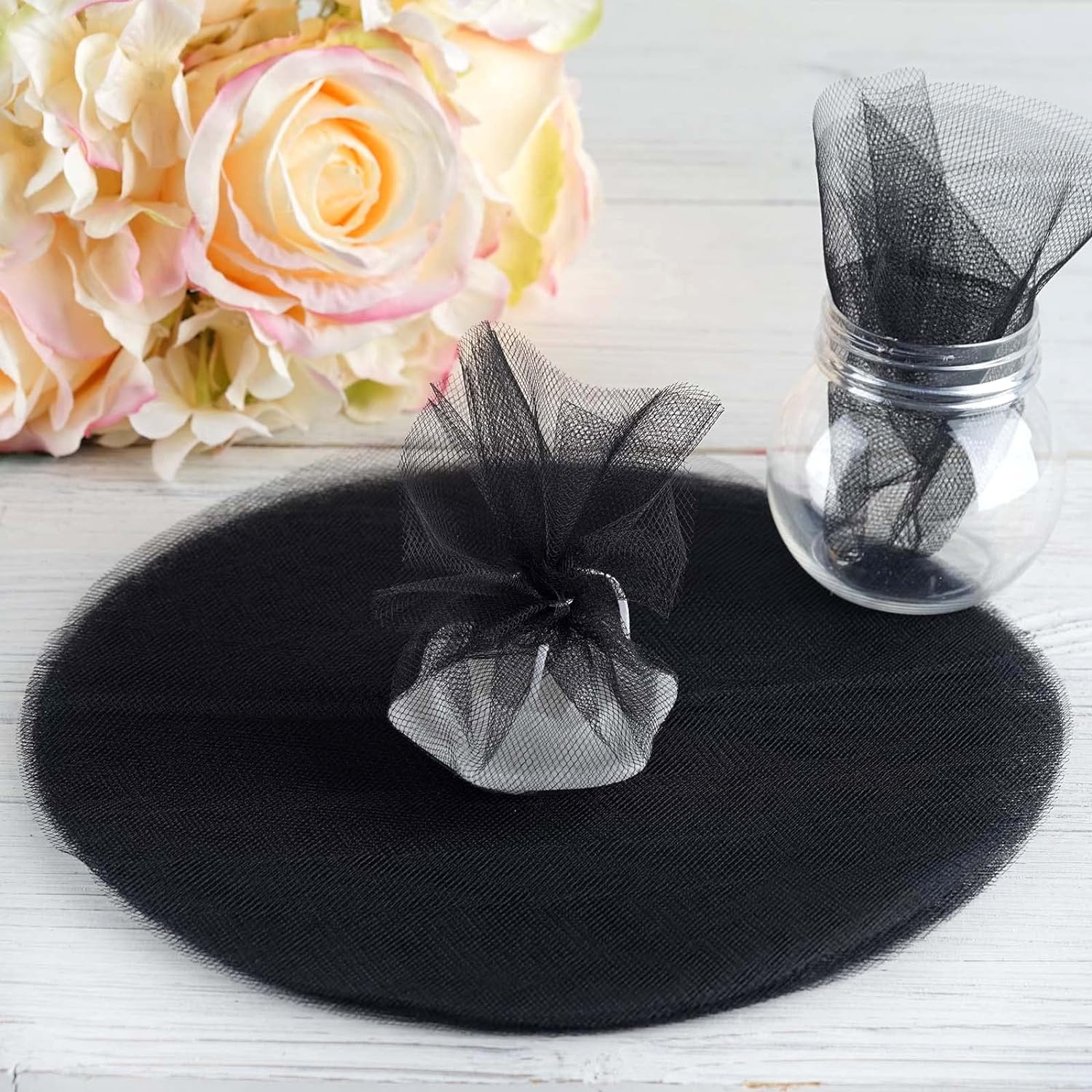 TABLECLOTHSFACTORY 25Pcs/ Pk 9" Tulle Circles Wedding Party Baby Shower Favors - Black