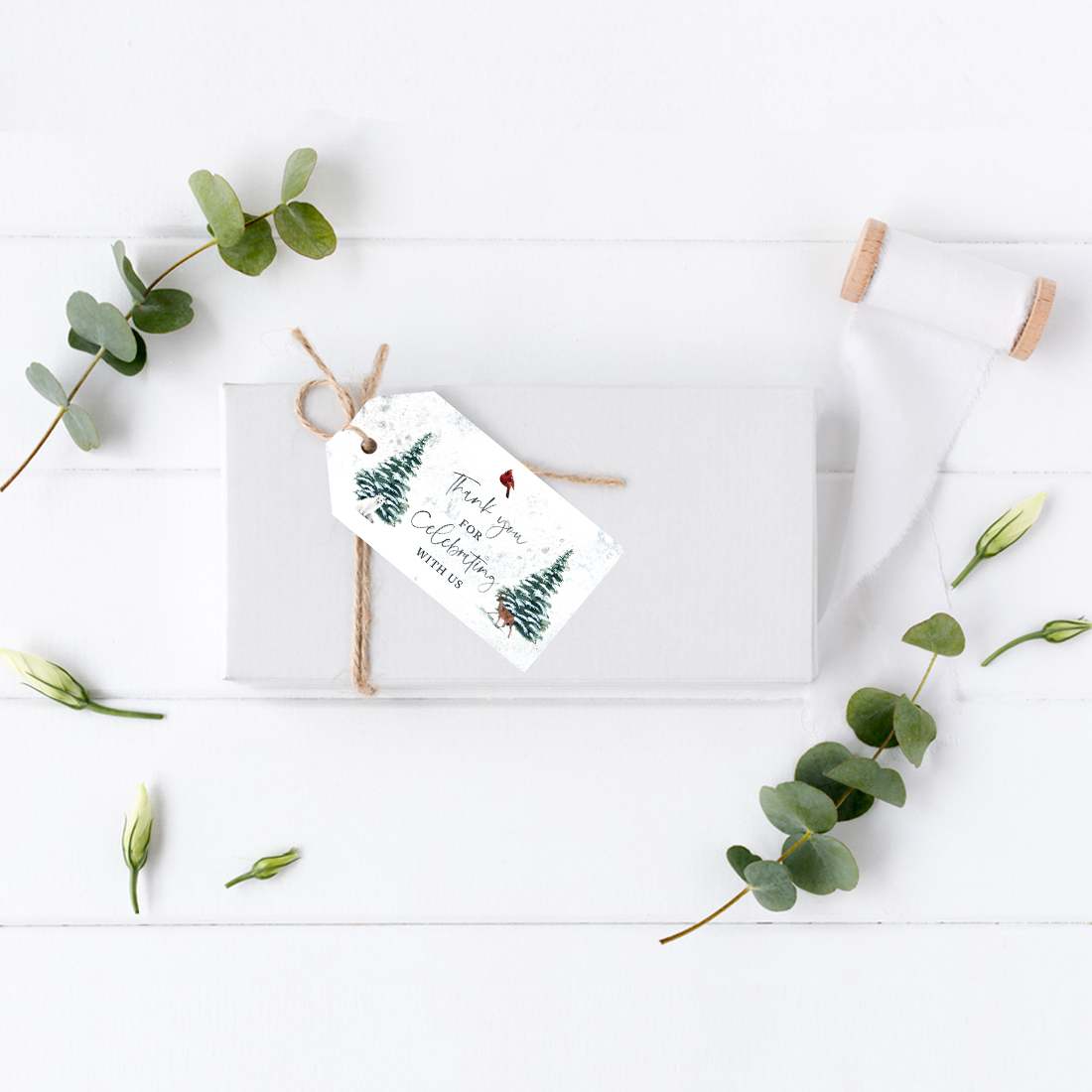 Koyal Wholesale Winter Snowy Woodland Forest Watercolor Wedding, Classic Tags, Thank You for Celebrating With Us, 20-Pk