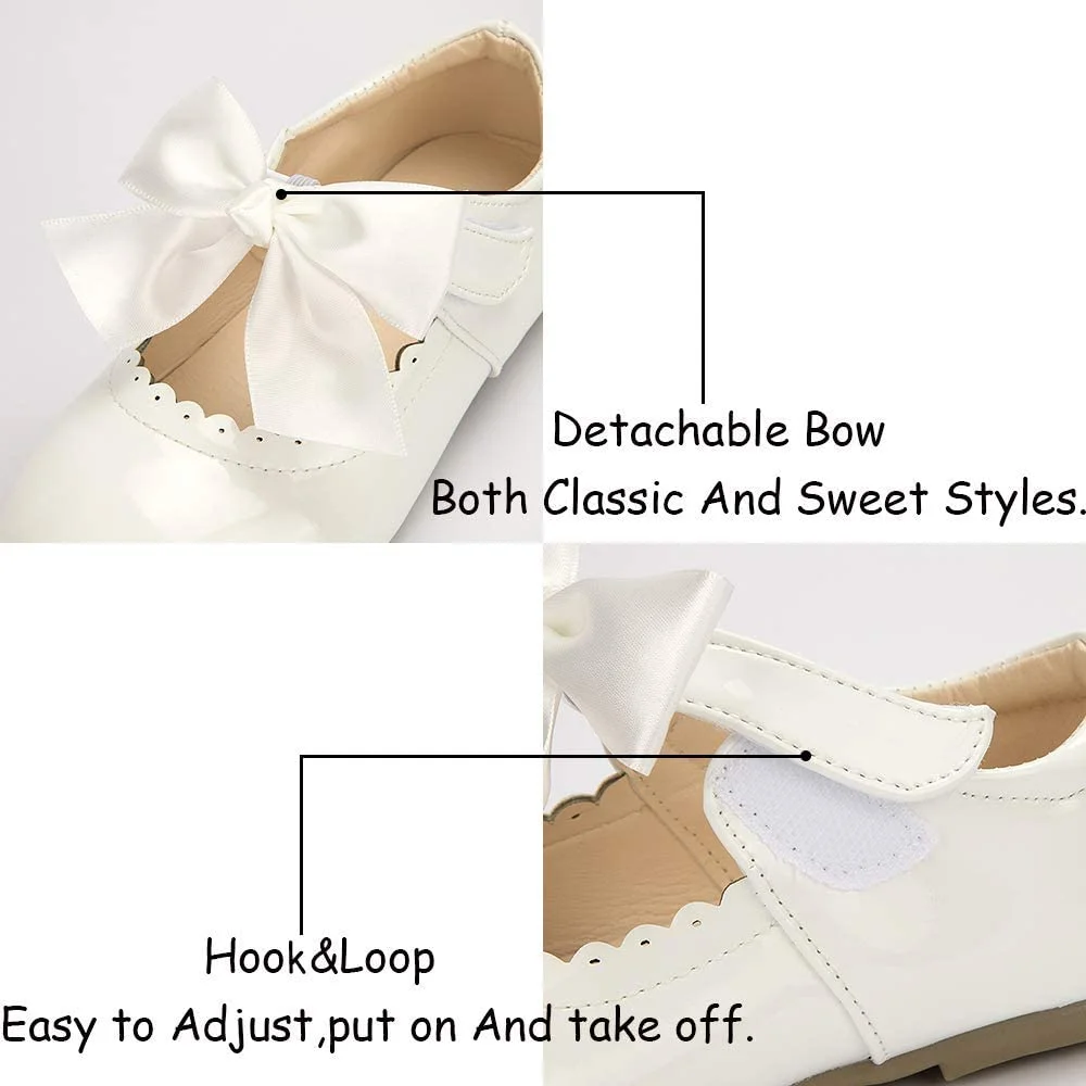 Meckior Toddler Dress Girls Shoes Mary Jane Bowknot Soft Sole Princess Shoes for Little Kids