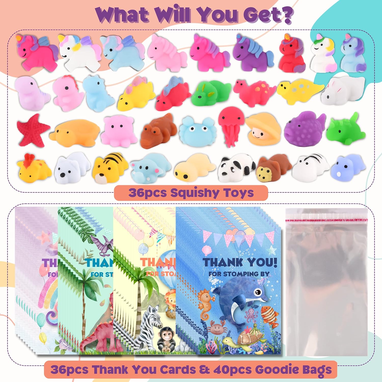 Squishy Party Favors for Kids - 36 Packs - Mini Stress Relief Toys