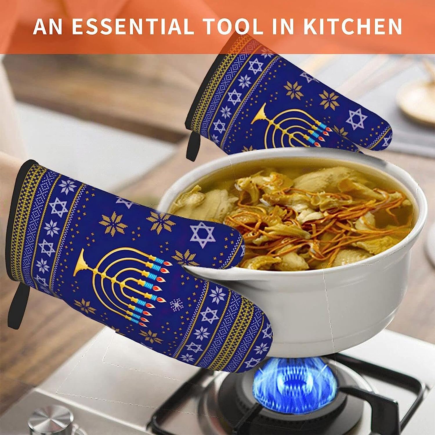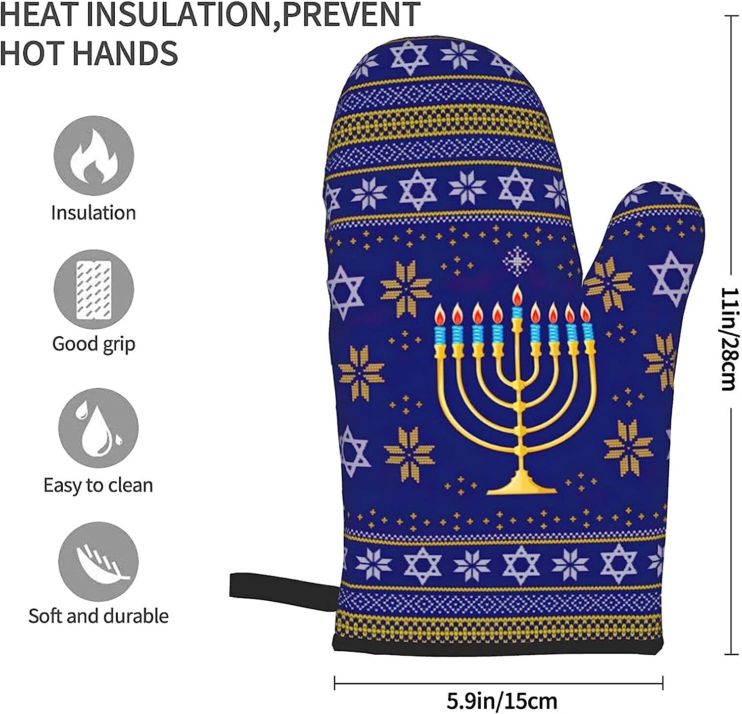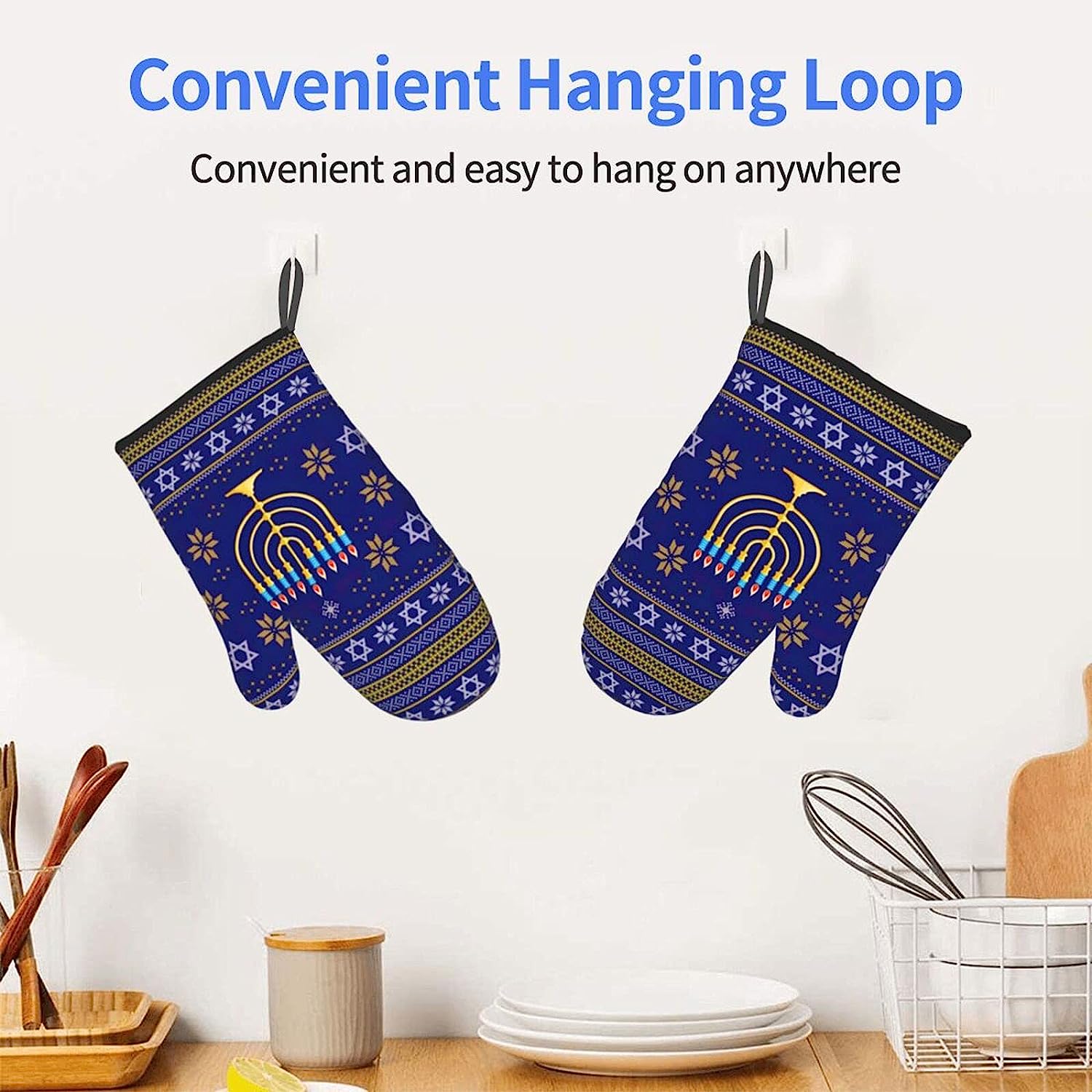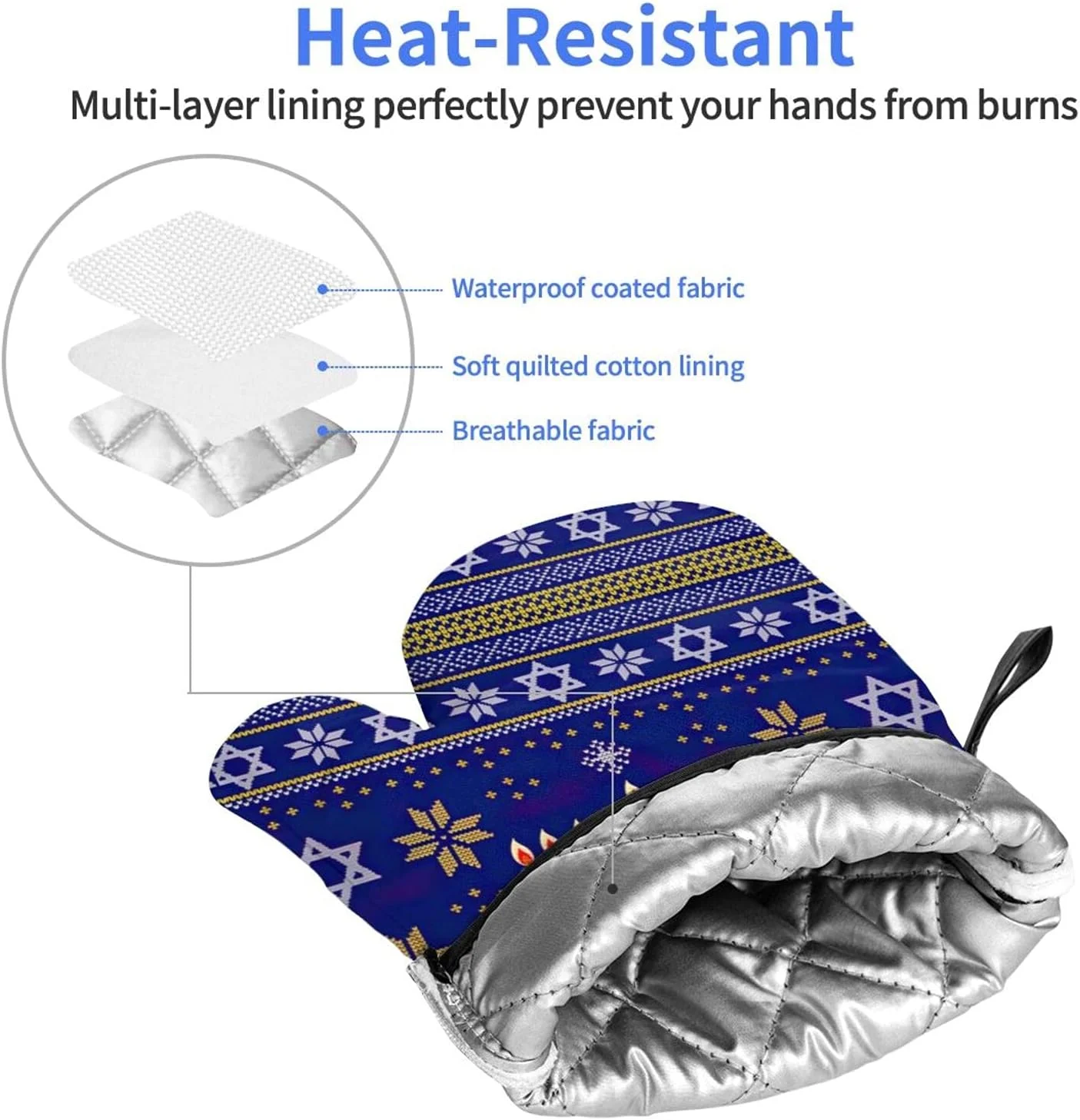 Hanukkah Jewish Holiday Oven Mitts Glove Microwave BBQ Oven Baking Pot Mitts Cooking Heat Resistant Kitchen Set of 2 Mittens