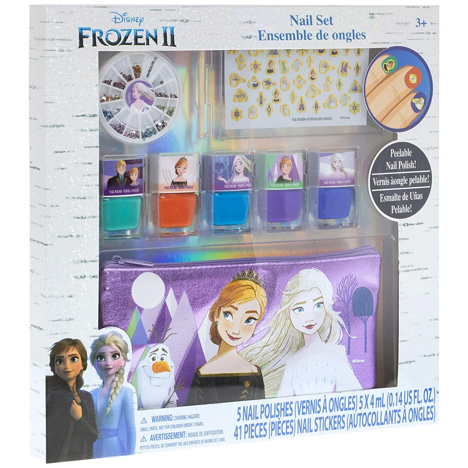 Disney Frozen 2 - Townley Girl Peel- Off Nail Polish Activity Set for Girls, Ages 3+ With 5 Nail Polish Colors, 240 Nail Gems, and Bag for Parties, Sleepovers and Makeovers