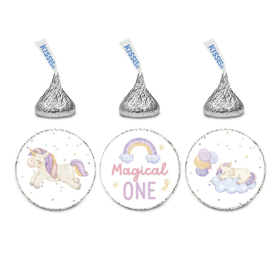 Koyal Wholesale Unicorn Birthday Chocolate Drop Label Stickers for Kisses, For Kids Birthday Party Favors, 240-Pk